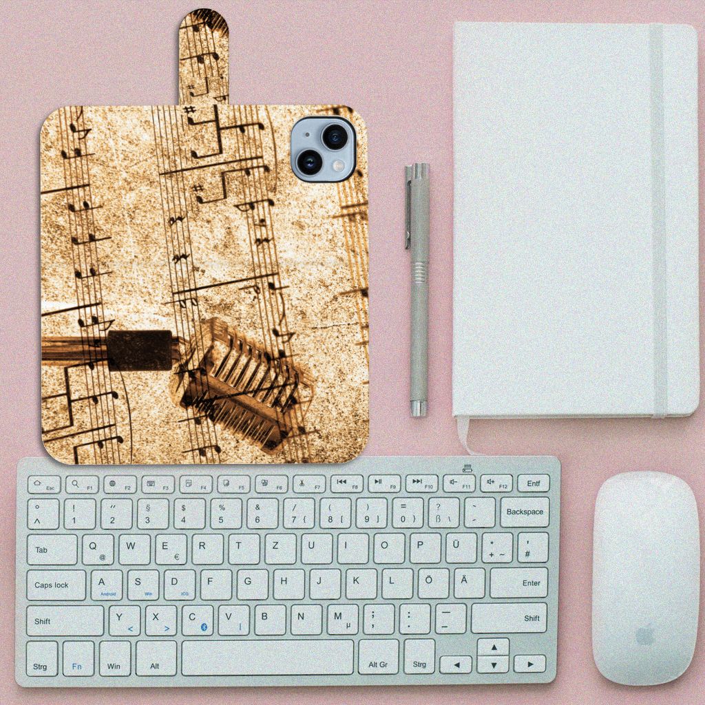 Hou jij van muziek? Dan is dit boekhoesje ontwerp met bladmuziek erop misschien wel wat voor jou. Het is een opvallend iPhone 15 Plus Telefoonhoesje met foto, andere muziekliefhebbers zullen het zeker opvallen. Als je wel van muziek houdt maar liever een band of artiest op jouw boekhoesje hebt, dan kan dit ook. Met onze unieke phone case designer tool kun je elke foto die je wilt zetten op dit iPhone 15 Plus Telefoonhoesje met foto. Het unieke hoesje wordt dan aan alle zijden bedruk met duurzame inkt, ook het lipje wordt bedrukt. En dit krijg je allemaal voor dezelfde spotprijs. Zo heb je voor een lage prijs een uniek hoesje wat echt alleen jij hebt en wat je helemaal zelf kunt ontwerpen.