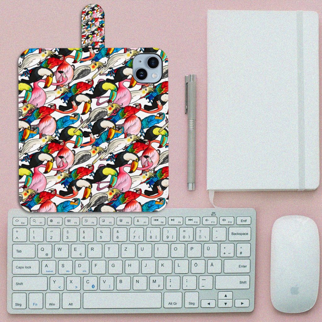 iPhone 15 Plus telefoonhoesje met ruimte voor drie pasjes Birds