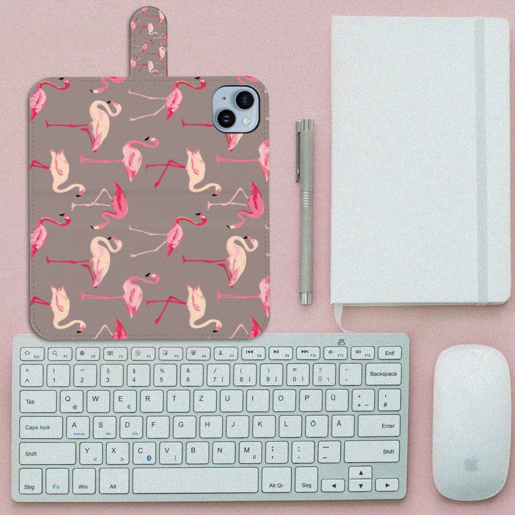 iPhone 15 Plus Telefoonhoesje met magnetische sluitclip Flamingo