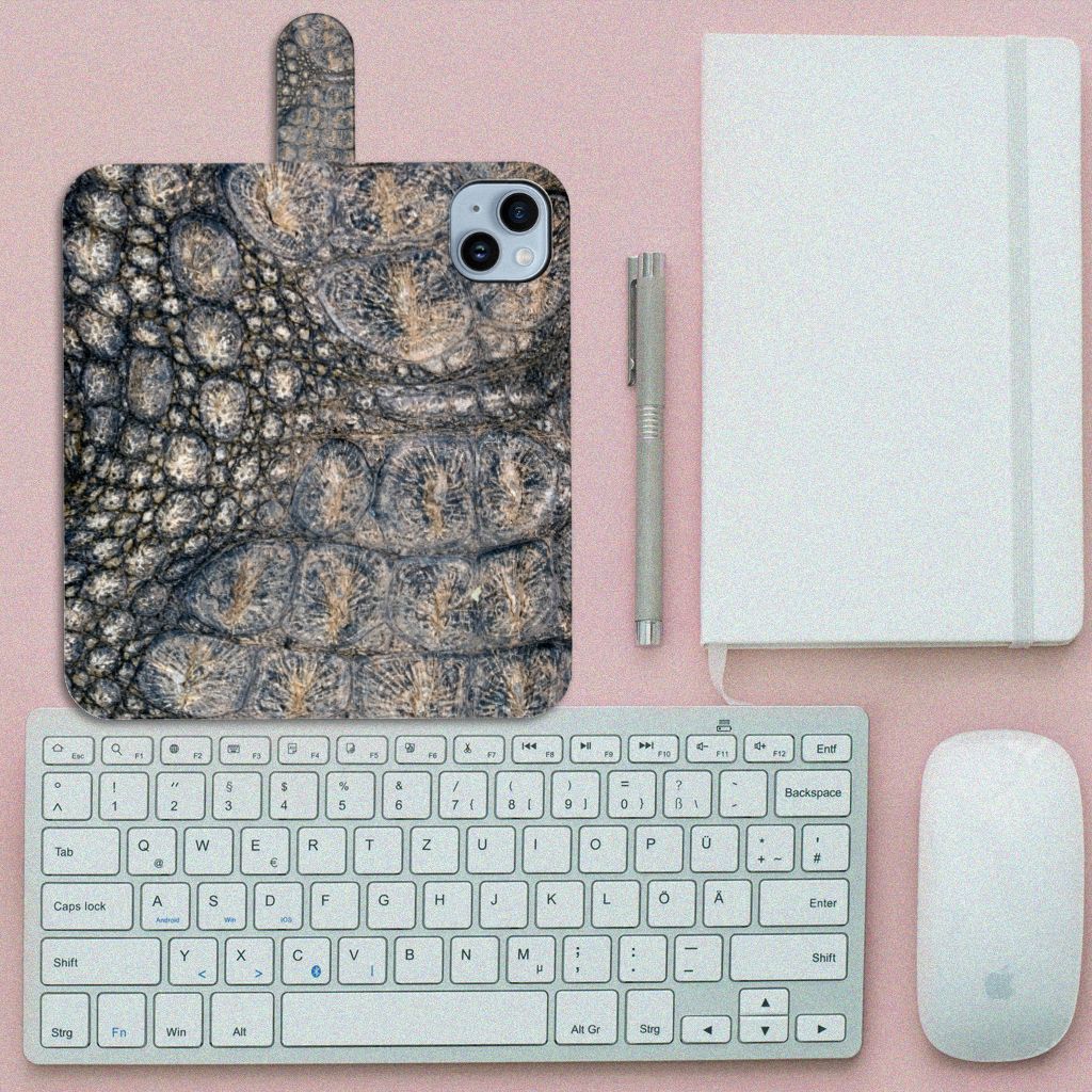 iPhone 15 Plus Telefoonhoesje met Pasjes Krokodillenprint