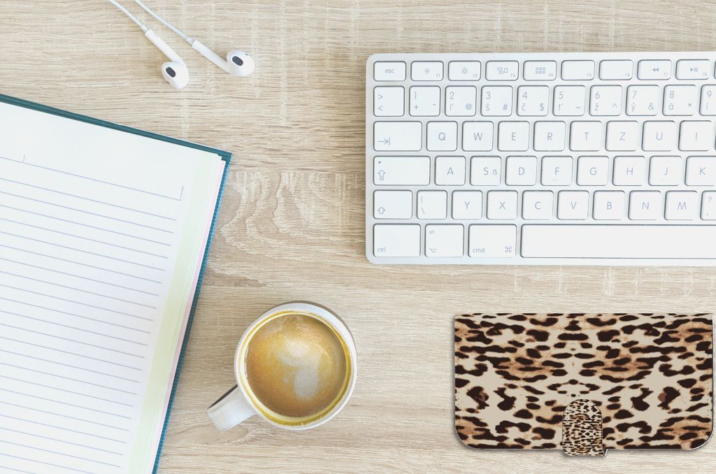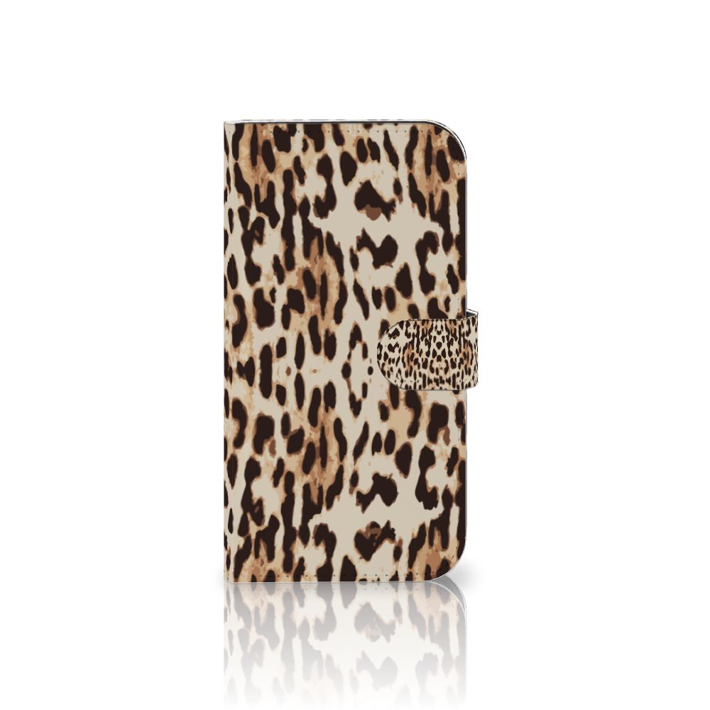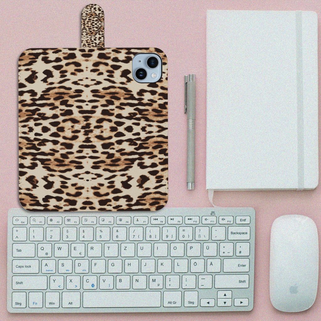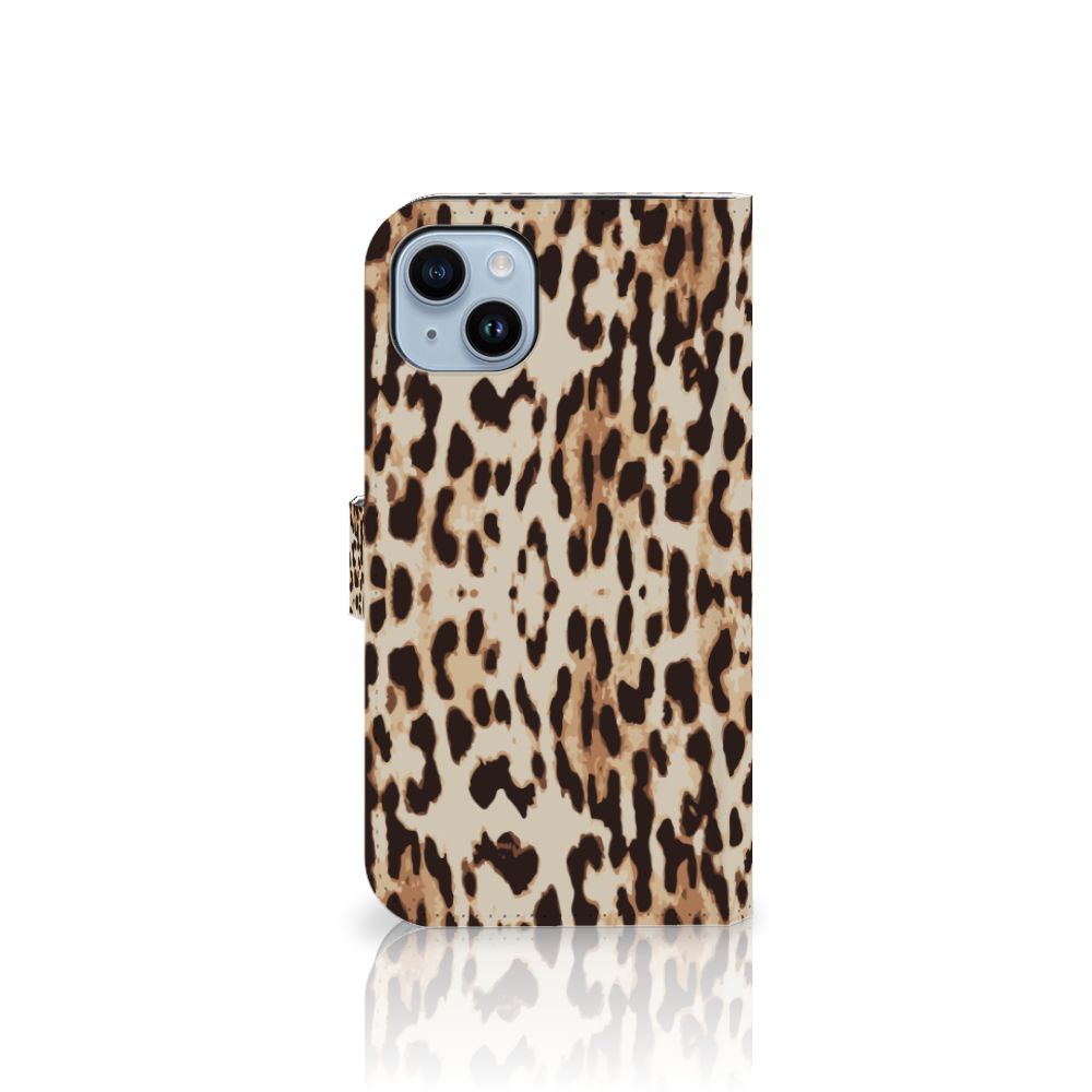 iPhone 15 Plus Telefoonhoesje met Pasjes en met magnetische sluitclip Leopard