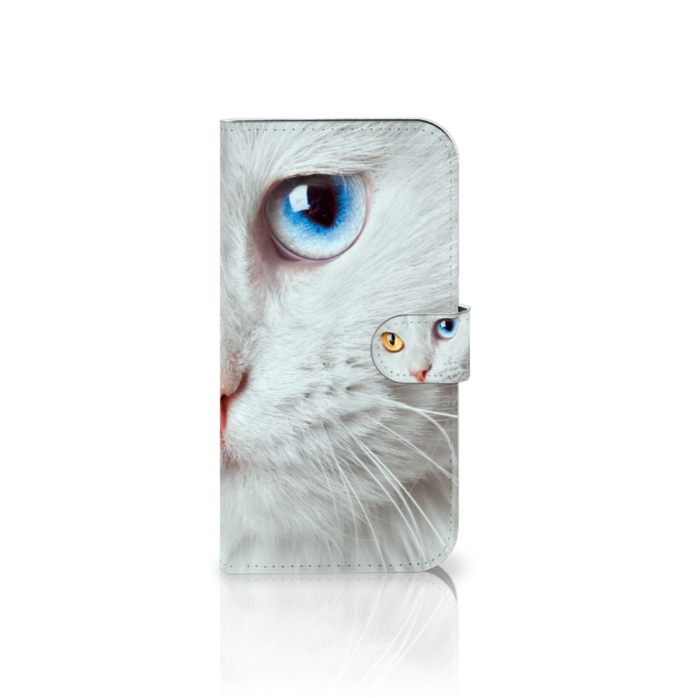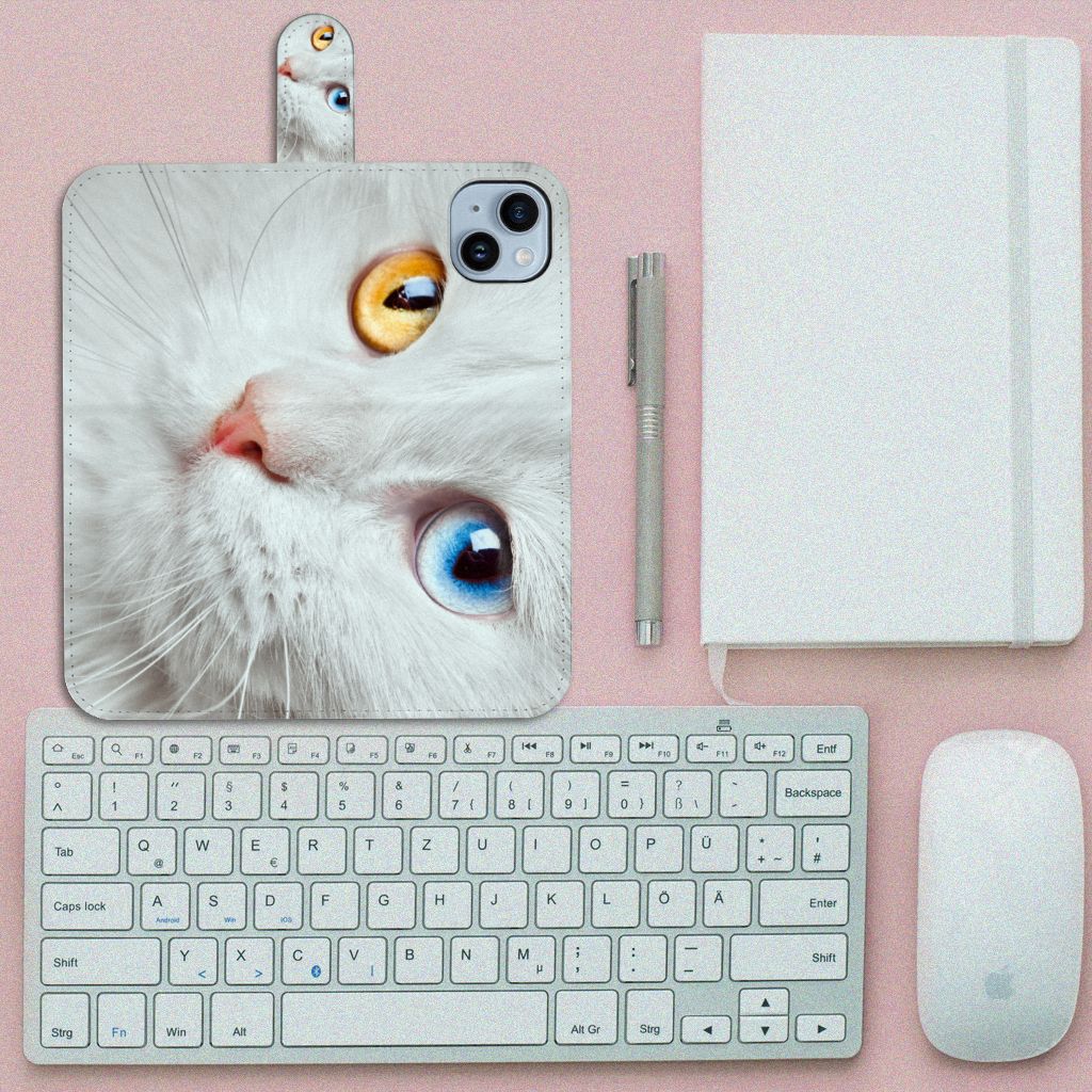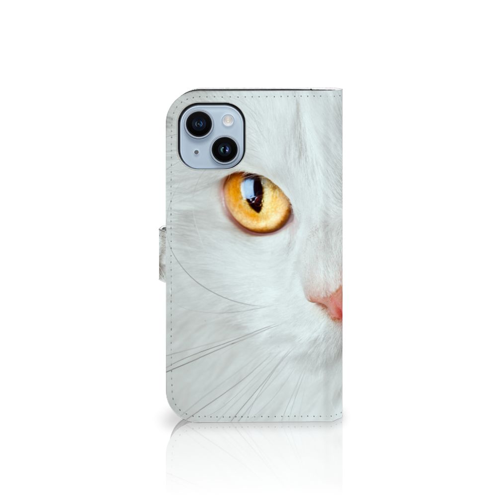 iPhone 15 Plus Telefoonhoesje met magnetisch lipje als sluiting Witte Kat