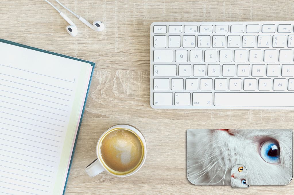 Witte katten zijn erg bijzonder en dat is precies de reden dat wij deze op prominente wijze op dit design hoesje hebben geplaatst. Maar deze witte kat is extra speciaal, doordat de ogen twee verschillende kleuren hebben: blauw en vurig rood. Hiermee heb jij als uniek mens ook een unieke bookcase. Ook de manier waarop dit telefoonhoesje voor de iPhone 15 Plus is bedrukt, is bijzonder. Je ziet namelijk een kleinere versie van dezelfde kat terug op het lipje. Hierdoor zie je de speciale witte kat twee keer terugkomen op jouw hoesje. Omdat je waarschijnlijk een dierenliefhebber bent als je dit Telefoonhoesje met Pasjes uitkiest, is dit ook een erg duurzaam hoesje. Het hoesje wordt aan alle kanten met duurzame inkt bedrukt.