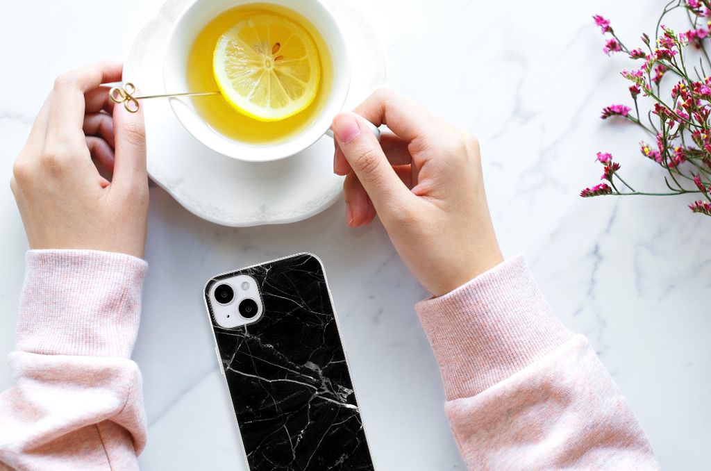 Dit design hoesje met Marmer Zwart is voor de artistieke personen onder ons. De Grieken en Romeinen wisten het materiaal al te waarderen door het in de bouw toe te passen. Naast het witte marmer met haar zacht grijze geaderde belijning zijn de diverse soorten in een gevarieerd kleurenpallet te krijgen. We hebben mooie kleuren op design hoesjes gezet, zoals in dit geval zwart marmer. Dit is een iPhone 15 Plus TPU Siliconen Hoesje met marmer in bruine kleur. Het marmer wordt bedrukt op de voorkant van een tpu case, die beschikt over opstaande randen aan de voorkant en heel goed combineert met een screenprotector van glas of van folie. De rijkdom aan kleuren en varianties in afwerking geeft ontwerpers de vrijheid om met marmer hele mooie architectonische projecten te realiseren. Wij hebben onze designer tevens veel vrijheid gegeven. Het resultaat zie je terug in deze tpu case met zwart marmer, die jouw smartphone goed beschermt. De zijkanten van de case worden niet bedrukt met het zwarte marmer.
