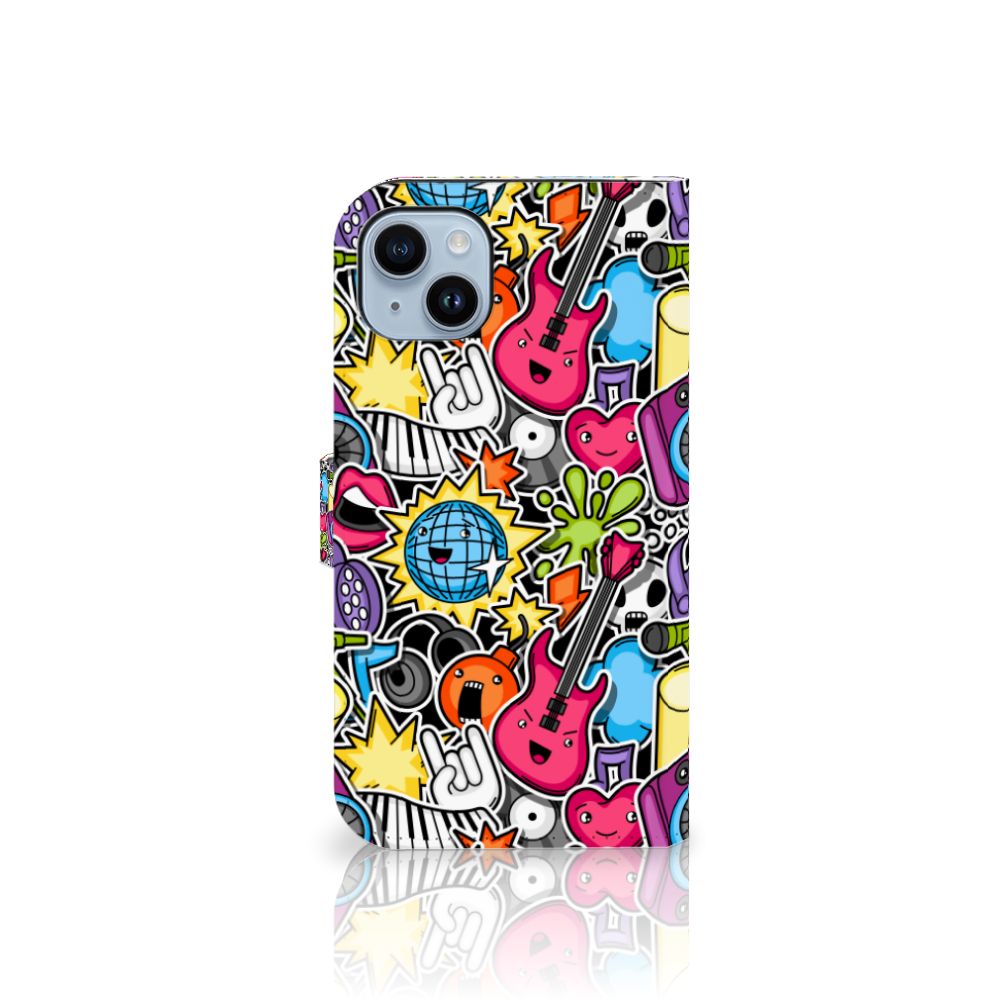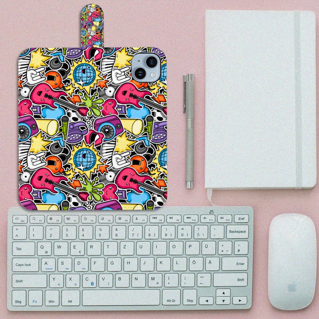 iPhone 15 Plus Walletcase met magnetisch lipje als sluiting Punk Rock