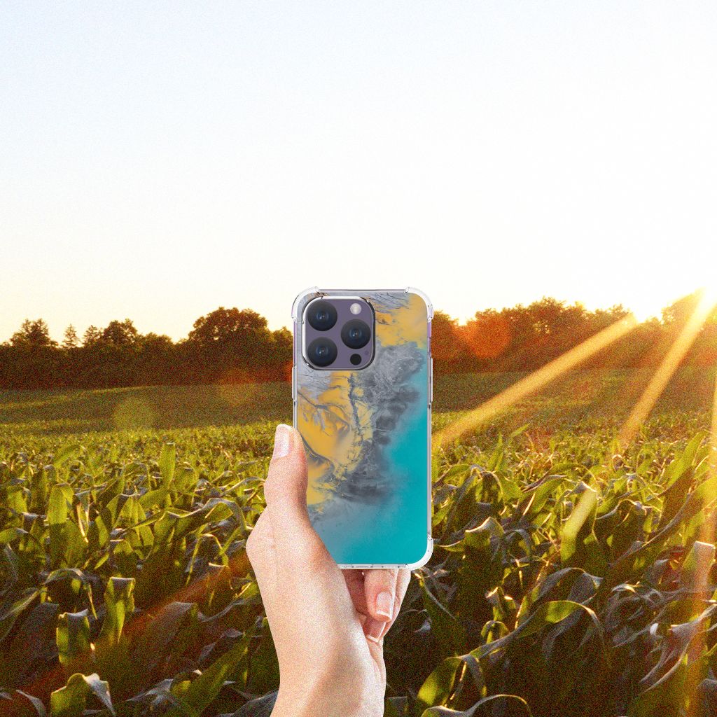 Ben je op zoek naar een uniek telefoonhoesje voor je iPhone 15 Pro? Dan ben je bij B2C Telecom aan het juiste adres! Speciaal voor jou hebben we dit prachtige Marble Blue Gold design in onze collectie hoesjes opgenomen. Het design wordt bedrukt op een Anti-Shock Hoesje en is gemaakt van flexibel rubber. Het hoesje is perfect voor de actieve smartphonegebruiker door de opstaande randen/hoeken. Denk aan mensen die veel sporten, reizen of wandelen en net iets meer zekerheid willen als het op hun geliefde telefoon aankomt. Het design wordt alleen aan de bovenkant van het hoesje bedrukt en de randen blijven transparant. Aan de zijkanten zijn uitsparingen gemaakt waardoor je met gemak alle knoppen en poorten kunt bedienen. Wij adviseren om dit hoesje in combinatie met een screenprotector te gebruiken voor een langere levensduur van je telefoon. Wil je dit hoesje nog iets extra's geven? Voeg dan gratis je naam of een quote toe! Is dit design hoesje toch niet helemaal wat je zocht? Ontwerp dan zelf een hoesje in ons ontwerpprogramma.