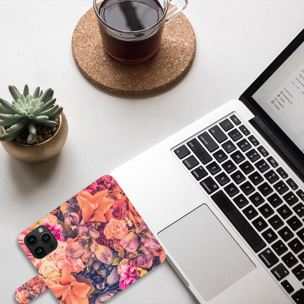 Bijna iedereen wordt wel blij van een bosje bloemen en dus worden we ook blij als er bloemen op ons boekhoesje staan afgebeeld. Dit boeket van roze, oranje en paarse bloemen is lekker opvallend maar geeft het iPhone 15 Pro Hoesje ook een sierlijke uitstraling. Zo wordt je direct vrolijk als je bezig bent met jouw smartphone, bijvoorbeeld tijdens het appen of bellen. Waar je ook vrolijk van zult worden is de goede bescherming die dit smartphone hoesje biedt. Het is een boekhoesje waardoor alle zijden van jouw telefoon worden beschermd. Als hij dan per ongeluk een keer op de grond valt, is er niets aan de hand. Door het magnetische sluitlipje blijft ook het beeldscherm beschermd als hij de grond raakt.
