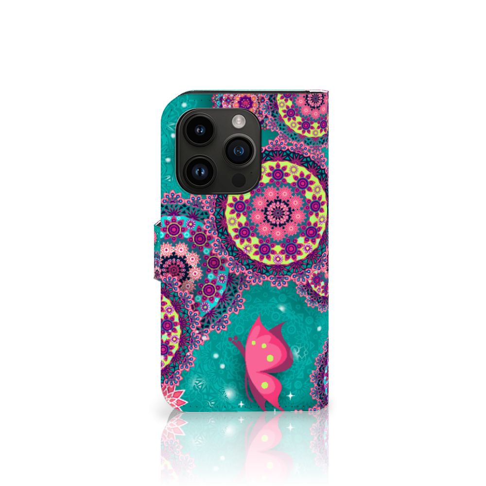 iPhone 15 Pro Hoesje met pasjes Cirkels en Vlinders
