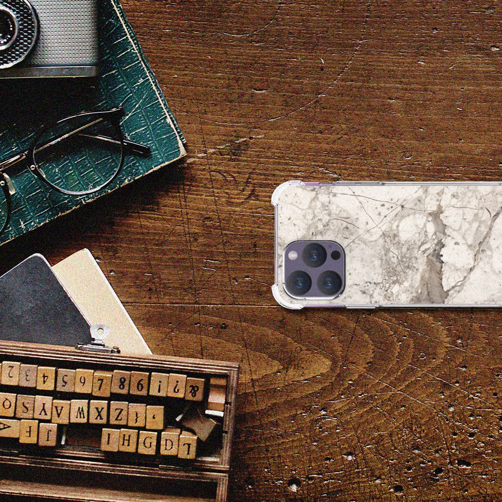 Ben je op zoek naar een uniek telefoonhoesje voor je iPhone 15 Pro Max? Dan ben je bij B2C Telecom aan het juiste adres! Speciaal voor jou hebben we dit prachtige Marmer Beige design in onze collectie hoesjes opgenomen. Het design wordt bedrukt op een Anti-Shock Hoesje en is gemaakt van flexibel rubber. Het hoesje is perfect voor de actieve smartphonegebruiker door de opstaande randen/hoeken. Denk aan mensen die veel sporten, reizen of wandelen en net iets meer zekerheid willen als het op hun geliefde telefoon aankomt. Het design wordt alleen aan de bovenkant van het hoesje bedrukt en de randen blijven transparant. Aan de zijkanten zijn uitsparingen gemaakt waardoor je met gemak alle knoppen en poorten kunt bedienen. Wij adviseren om dit hoesje in combinatie met een screenprotector te gebruiken voor een langere levensduur van je telefoon. Wil je dit hoesje nog iets extra's geven? Voeg dan gratis je naam of een quote toe! Is dit design hoesje toch niet helemaal wat je zocht? Ontwerp dan zelf een hoesje in ons ontwerpprogramma.