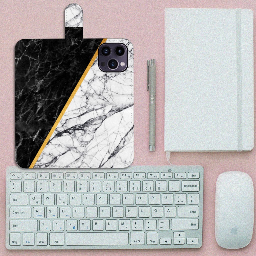 Bookcase iPhone 15 Pro Max Marmer Wit Zwart