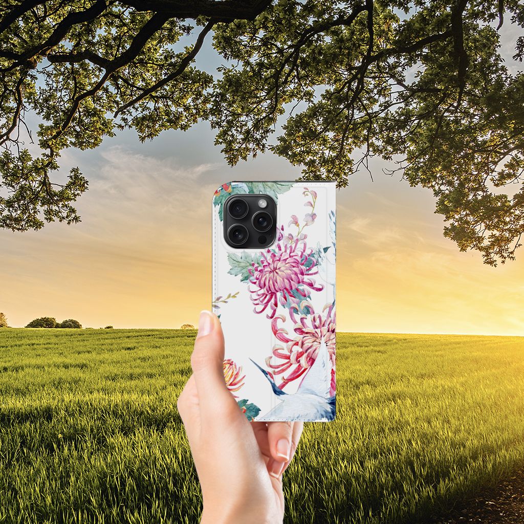 Verspreid over de hele wereld leven 19 soorten ooievaars. De spanwijdte – dat is de afstand van vleugeltip tot vleugeltip – van een volwassen ooievaar kan 2.50 meter bedragen. De gebieden waarin de ooievaar broedt, liggen in heel Europa, het Midden-Oosten, West- en Centraal-Azië en Noordwest-Afrika. Het ideale leefgebied van de ooievaar is een half open tot open landschap met veel afwisseling in grondgebruik en begroeiing. De begroeiing op dit design hoesje, in allerlei verschillende kleuren, zal niet alleen voor de ooievaars fraai zijn. Jij zult er zelf ook heel vrolijk van worden. Het in het oog springende design staat op een Hoesje maken. Deze case beschermt jouw iPhone 15 Pro Max aan alle kanten en beschikt over een 1 opbergvakje en een speciale standaard. Het hoesje wordt afgesloten met een magneet aan de binnenzijde. De houder aan de binnenzijde is van TPU. Alle zijden van de stand case worden bedrukt.