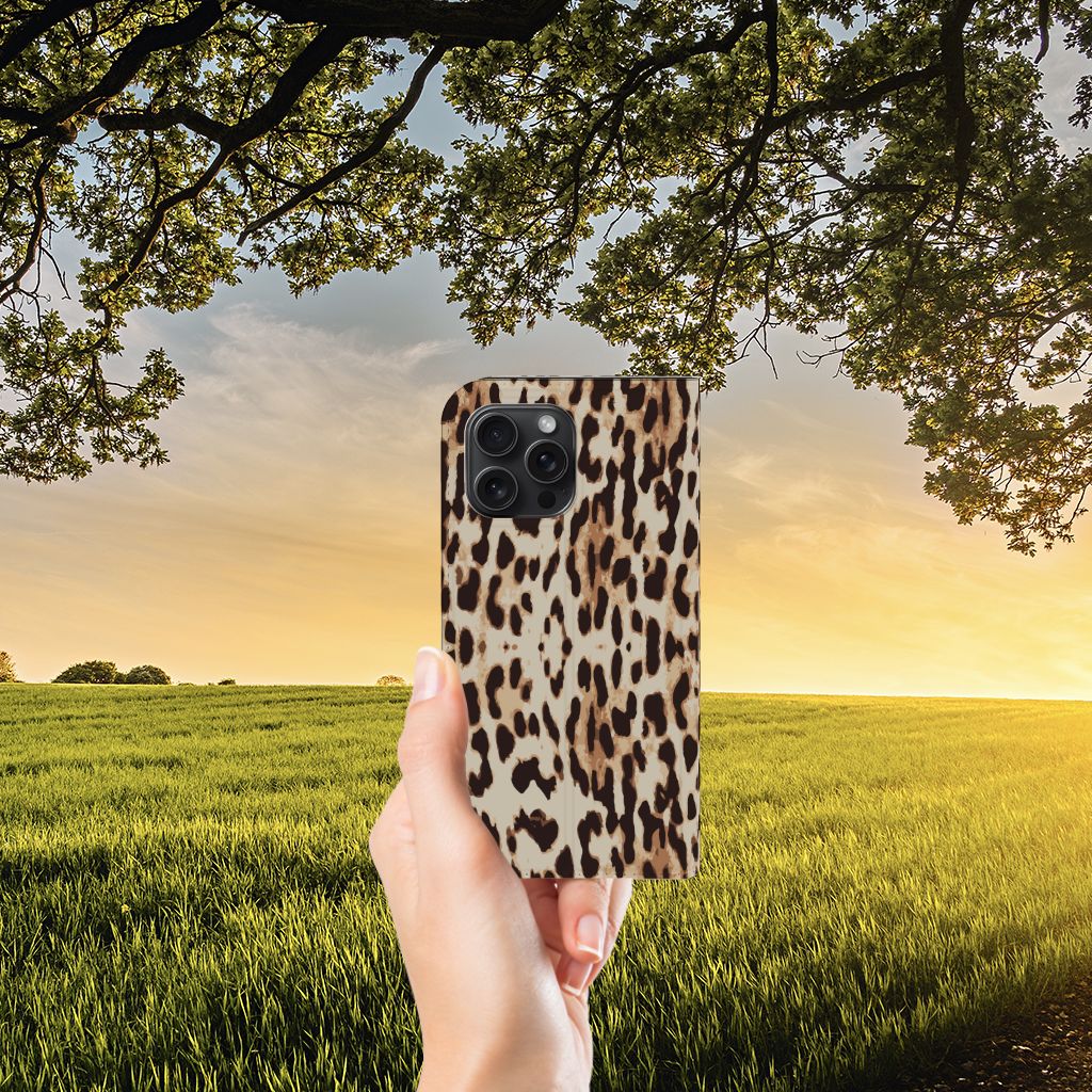 Het luipaard wordt ook wel een panter genoemd en is een sluwe kat. De bruingele vacht met een patroon van rozetachtige vlekken geeft een goede schutkleur. Dit zie je ook op een fraaie manier afgebeeld op dit super stoere hoesje met luipaardprint. Mensen die indruk willen maken kopen deze stand case met Leopard print. Een iPhone 15 Pro Max Hoesje maken is van alle markten thuis. Het is praktisch – vanwege onder meer het opbergvakje en de magnetische sluiting aan de binnenzijde – maar beschermt jouw smartphone tevens op een geweldige manier. Het luipaard is sterk en behendig en wellicht typeert jou dat ook wel. Dan past dit hoesje met luipaard perfect bij jou. De houder van TPU aan de binnenzijde is minstens zo sterk als het luipaard. Jouw telefoon is perfect beschermd en de case heeft tevens een standaard.