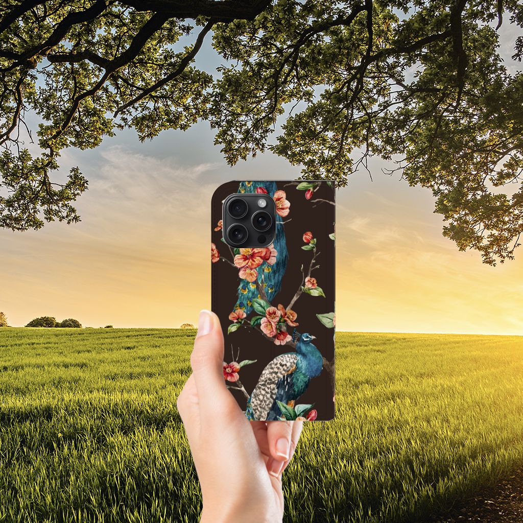 Op deze iPhone 15 Pro Max Hoesje maken kun jij zo trots als een pauw zijn. Met dit geweldige design hoesje met een Pauw met Bloemen erop kun jij je smartphone voor zeer lange tijd beschermen. Deze stand case is zeer duurzaam en heeft aan de binnenkant een opbergvakje, waarin je een fitnesspas of pinpas kwijt kunt. Met een stand case met fleurige bloemen en trotse pauwen wordt jouw telefoon er een stuk mooier op. De onderscheidend case heeft een houder van TPU en een magneet aan de binnenkant. Zie jij liever jouw eigen huisdier op een telefoonhoesje? Dan adviseren we je zelf een hoesje te ontwerpen met onze unieke Phone Case Designer. We bedrukken alle zijden van de stand case, met duurzame inkt.