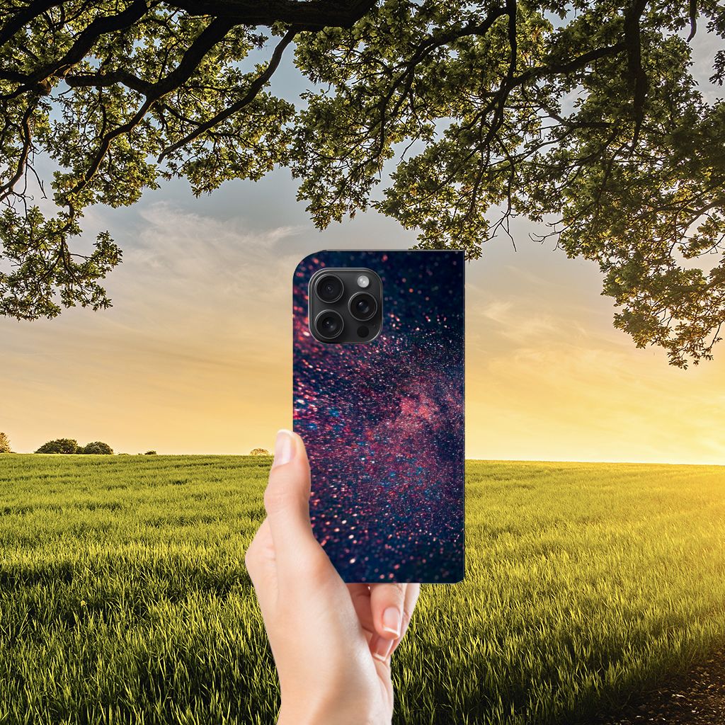 Je waant je in de zevende hemel met dit kunstzinnige, glitterachtige design hoesje met paarse en blauwe kleuren tegen een inktzwarte achtergrond. Het smartphone hoesje heeft ook een wat science fiction achtige allure. Met deze design Stars case zul je zeker opvallen. Als dit je bedoeling is, bestel dat snel dit waanzinnig mooie product voor je iPhone 15 Pro Max. Het telefoonhoesje is van alle gemakken voorzien en combineert een hele fraaie uitstraling met maximaal comfort. Bovendien is het gemaakt van zeer stevig en flexibel materiaal. Het unieke design, door B2C Telecom ontworpen, staat op een Stand Case. Deze case beschermt jouw telefoon aan alle kanten en beschikt over een 1 opbergvakje en een speciale standaard. Het hoesje wordt afgesloten met een magneet aan de binnenzijde. De houder aan de binnenzijde is van TPU.
