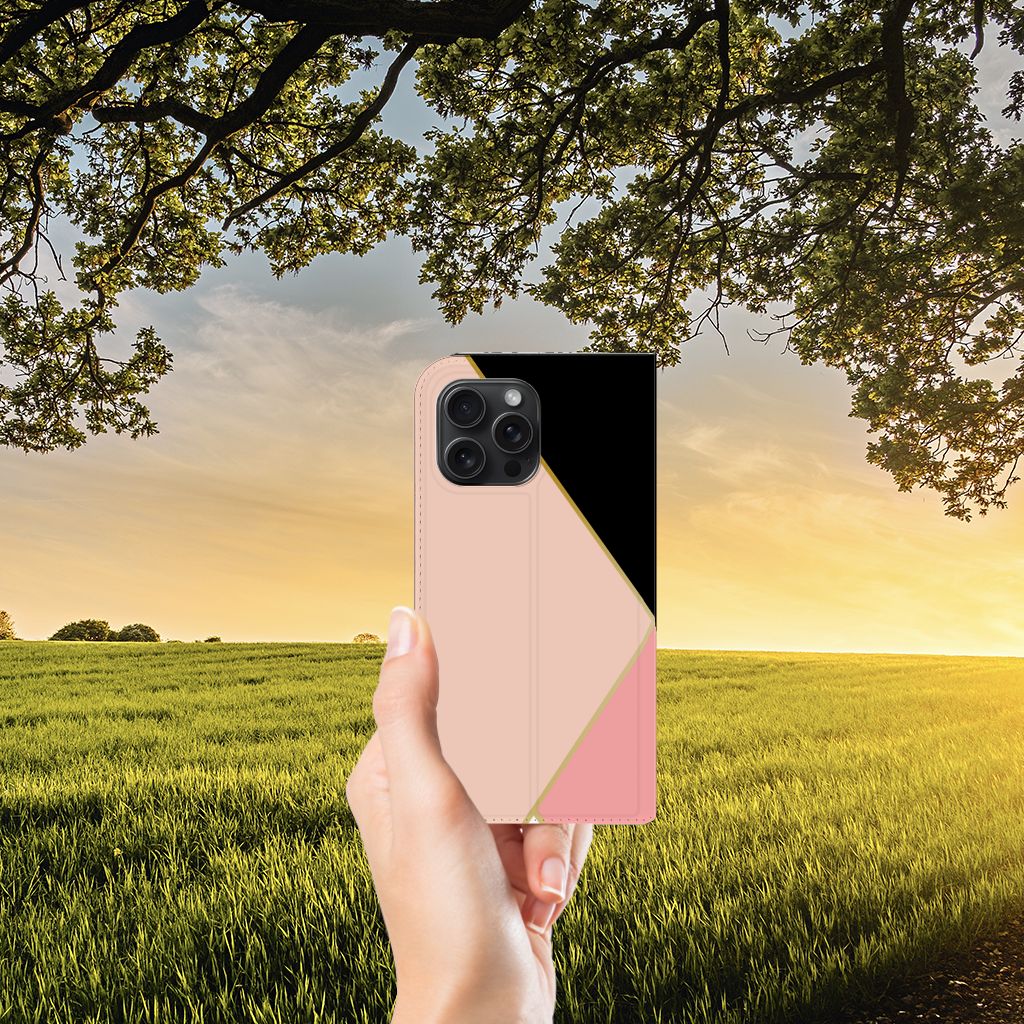 iPhone 15 Pro Max Print Stand Case Zwart Roze Vormen
