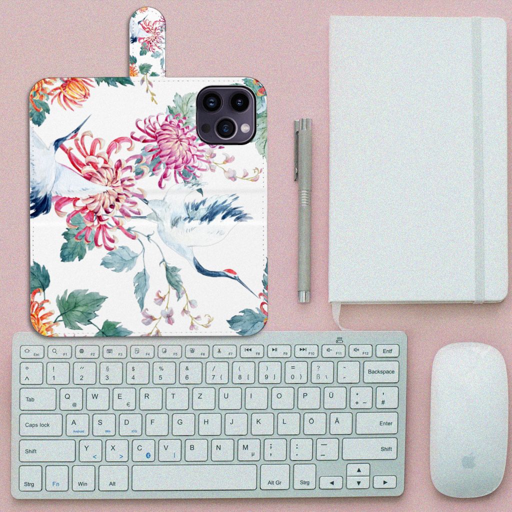 iPhone 15 Pro Max Telefoonhoesje sluit met magnetische lipje Bird Flowers