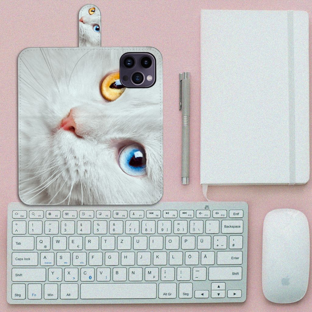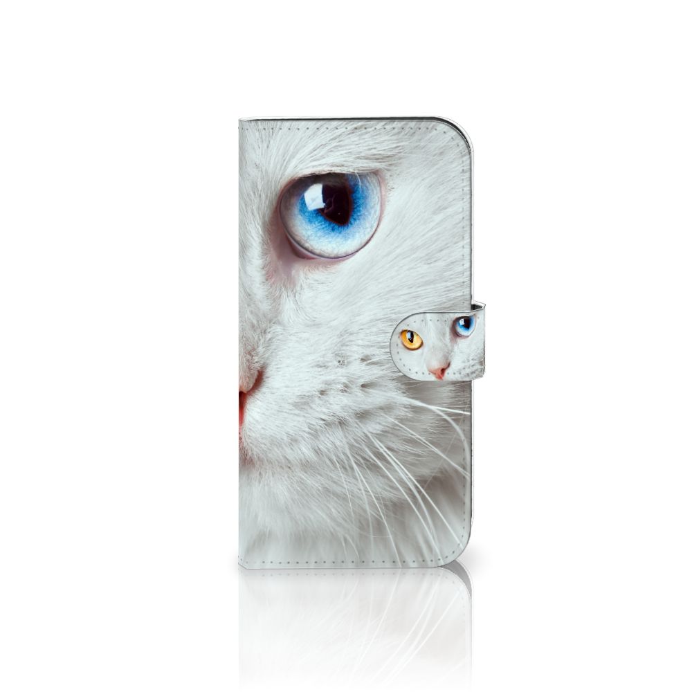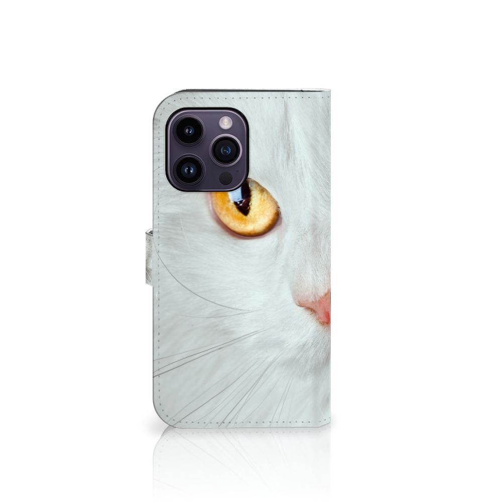 iPhone 15 Pro Max Telefoonhoesje met magnetisch lipje als sluiting Witte Kat