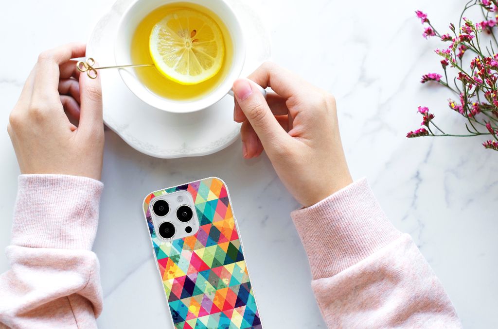 Van dit geruite design hoesje moet je een beetje houden. Maar als je het eenmaal in bezit hebt, ben je waarschijnlijk binnen no time verkocht. Het design heeft ruitjes in alle kleuren van de regenboog en door de grijze achtergrond kan het hoesje enigszins druk overkomen. Maar tegelijkertijd is dit de kracht van het hoesje. Met dit design hoesje Geruit zal je namelijk heel erg opvallen. Dit is voor veel vooral jonge smartphone gebruikers een belangrijk voordeel. Deze geruite print staat op een iPhone 15 Pro Max TPU bumper. Dit zeer flexibele smartphone hoesje heeft alle nodige uitsparingen en past altijd in je broekzak. De case is aan de bovenkant bedrukt, de randen blijven transparant.