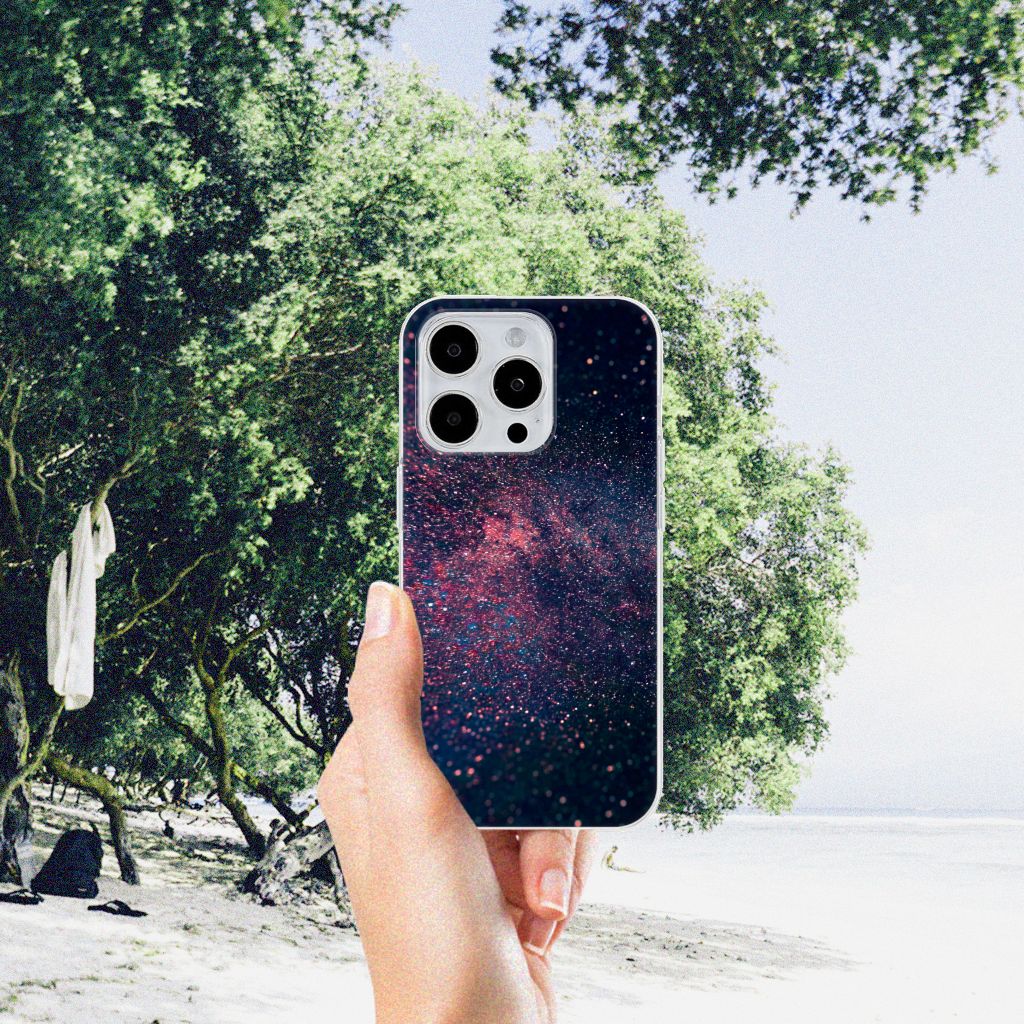 Je waant je in de zevende hemel met dit kunstzinnige, glitterachtige design hoesje met paarse en blauwe kleuren tegen een inktzwarte achtergrond. Het smartphone hoesje heeft ook een wat science fiction achtige allure. Met deze design Stars case zul je zeker opvallen. Als dit je bedoeling is, bestel dat snel dit waanzinnig mooie product voor je iPhone 15 Pro Max. Het telefoonhoesje is van alle gemakken voorzien en combineert een hele fraaie uitstraling met maximaal comfort. Bovendien is het gemaakt van zeer stevig en flexibel materiaal. Het unieke design, door B2C Telecom ontworpen, staat op een TPU Hoesje. Dit hoesje wordt alleen aan de bovenkant bedrukt en is zeer flexibel. De randen van het hoesje blijven transparant en worden niet bedrukt. Met dit hoesje past jouw telefoon altijd in je broekzak.