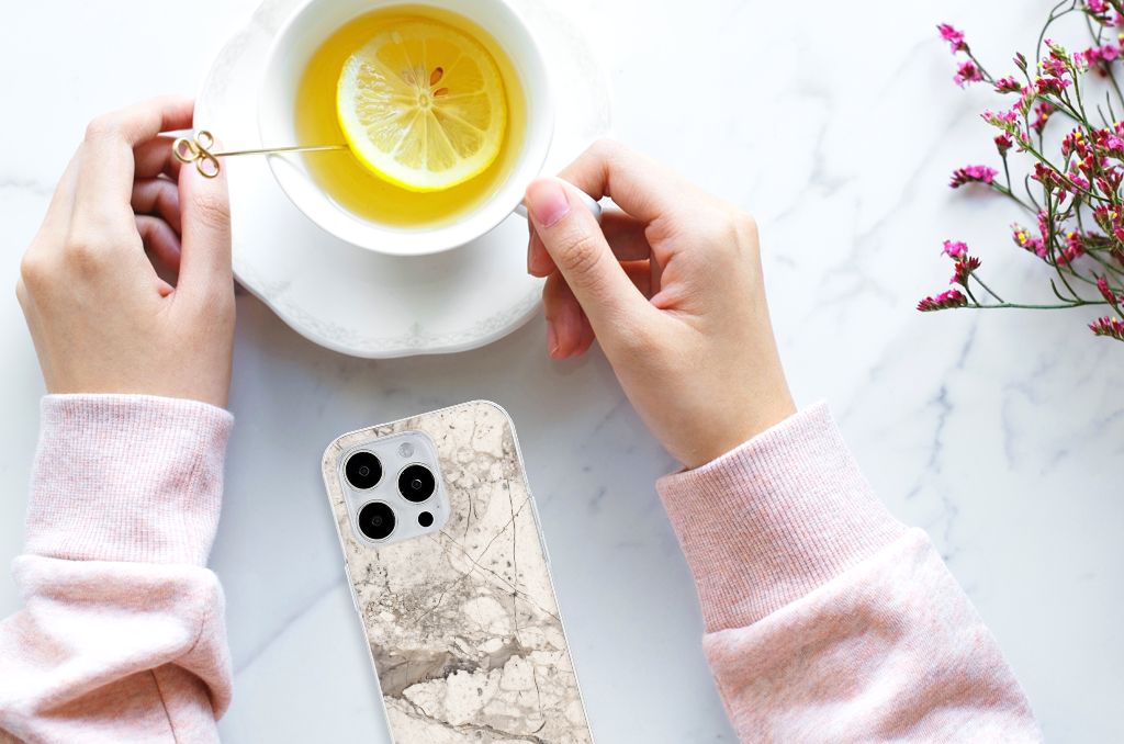 Dit design hoesje met Marmer Beige is voor de artistieke personen onder ons. De Grieken en Romeinen wisten het steen al te waarderen door het als bouw- en bekledingsmateriaal toe te passen. Naast het witte Carrara marmer met haar zacht grijze geaderde belijning zijn de diverse marmersoorten in een ruim kleurenpallet te krijgen. We hebben verschillende kleuren op design hoesjes gezet, zoals in dit geval beige marmer. Dit is een iPhone 15 Pro Max TPU Siliconen Hoesje met marmer in beige kleur. Het marmer wordt bedrukt op de voorkant van een tpu case, die beschikt over opstaande randen aan de voorkant en goed combineert met een screenprotector. De rijkheid aan kleuren en varianties in afwerking geeft designers de vrijheid om met marmer hele mooie architectonische projecten te realiseren. Wij hebben onze designer ook veel vrijheid gegeven. Het resultaat zie je terug in deze tpu case met beige marmer, die jouw smartphone goed beschermt. De zijkanten van de case worden niet bedrukt met marmer.