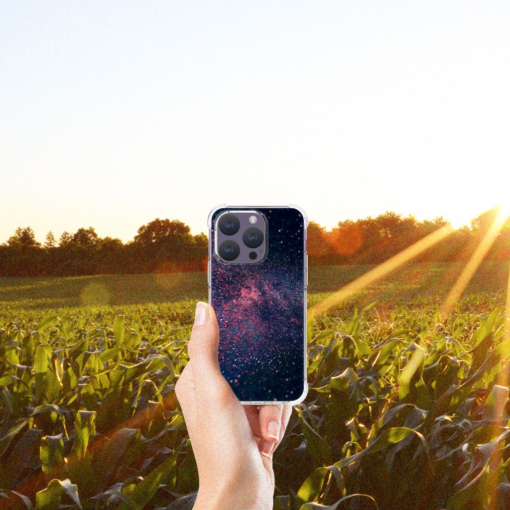 Ben je op zoek naar een uniek telefoonhoesje voor je iPhone 15 Pro? Dan ben je bij B2C Telecom aan het juiste adres! Speciaal voor jou hebben we dit prachtige Stars design in onze collectie hoesjes opgenomen. Het design wordt bedrukt op een Shockproof Case en is gemaakt van flexibel rubber. Het hoesje is perfect voor de actieve smartphonegebruiker door de opstaande randen/hoeken. Denk aan mensen die veel sporten, reizen of wandelen en net iets meer zekerheid willen als het op hun geliefde telefoon aankomt. Het design wordt alleen aan de bovenkant van het hoesje bedrukt en de randen blijven transparant. Aan de zijkanten zijn uitsparingen gemaakt waardoor je met gemak alle knoppen en poorten kunt bedienen. Wij adviseren om dit hoesje in combinatie met een screenprotector te gebruiken voor een langere levensduur van je telefoon. Wil je dit hoesje nog iets extra's geven? Voeg dan gratis je naam of een quote toe! Is dit design hoesje toch niet helemaal wat je zocht? Ontwerp dan zelf een hoesje in ons ontwerpprogramma.