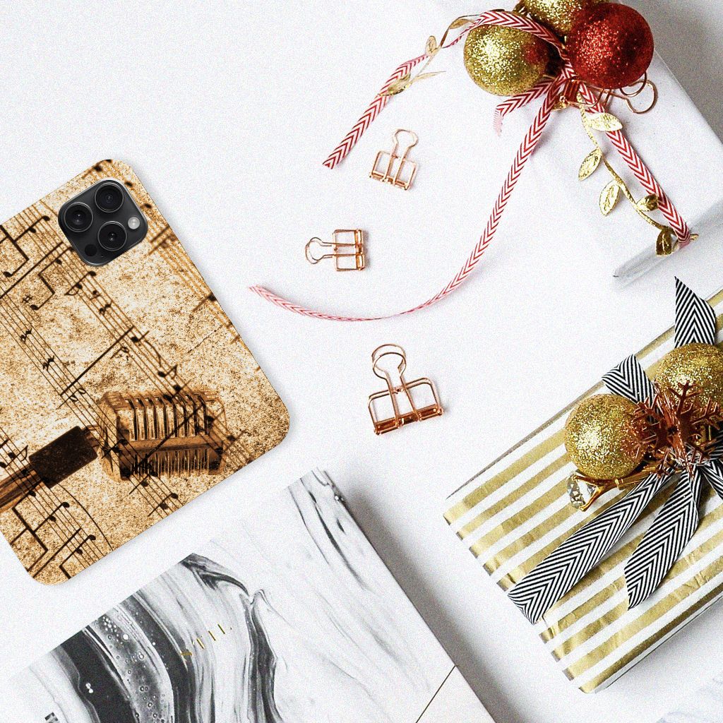 Ben je muzikant, dan is dit design hoesje met Bladmuziek wellicht echt iets voor jou. Met de intrede van nieuwe media wordt de rol van papieren bladmuziek teruggedrongen. Steeds vaker treft men 'bladmuziek' op een beeldschermapparaat, zoals een tablet-pc, e-reader of iPad aan. Gelukkig maar, want als er geen nieuwe media zouden zijn, hadden wij ook nooit onze Phone Case Designer kunnen ontwerpen. Met deze unieke ontwerpmodule kun je jouw favoriete band of artiest op je smartphone hoesje zetten, maar je kunt ook gaan voor dit prachtige design hoesje met print van bladmuziek. Het design staat op een iPhone 15 Pro Stand Case. Deze case beschermt jouw telefoon aan alle kanten en beschikt over een 1 opbergvakje en een speciale standaard. Het hoesje wordt afgesloten met een magneet aan de binnenzijde. De houder aan de binnenzijde is van TPU. Alle zijden van de stand case worden bedrukt.