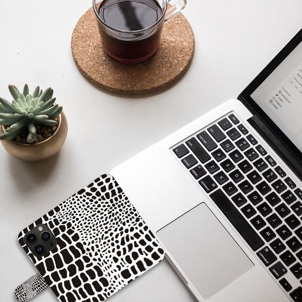 De reguliere slangenprint heb je waarschijnlijk al vaker gezien, maar heb je ooit een slangenprint in zwart en wit gezien? Doordat de slangenprint nu in het zwart en wit staat, ziet jouw iPhone 15 Pro Telefoonhoesje met Pasjes er nog exclusiever uit. Ook het model, een boekhoesje, ziet er exclusief uit. Maar behalve dat het er exclusief uitziet, is het ook heel praktisch. Je kunt in dit design hoesje namelijk 2 á 3 pasjes en wat briefgeld kwijt. Zo heb je al jouw waardevolle spullen veilig op dezelfde plek en kun je het niet kwijtraken. Dat scheelt weer een hoop gedoe als je een keer boodschappen gaat doen of op stap gaat. Je kunt jouw portemonnee lekker thuislaten.
