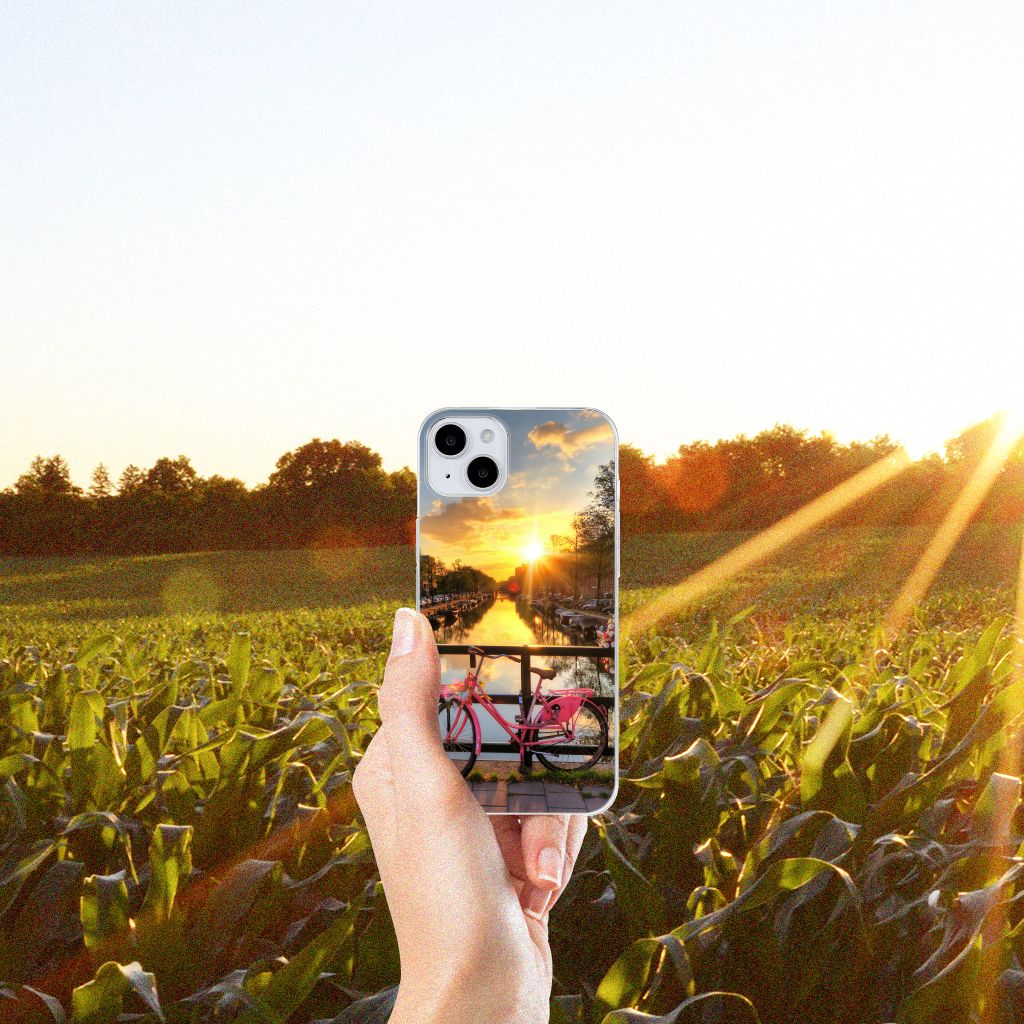 Amsterdam is meer dan ooit een toeristische trekpleister. Een bezoek aan de hoofdstad is niet compleet als je niet aanlegt bij de Amsterdamse Grachten. Ze zijn een symbool van de stad en hebben een enorme culturele en historische waarde. Daarom kunnen ze natuurlijk niet ontbreken in onze collectie design hoesjes. Dit schitterende design hoesje met Amsterdamse grachten tref je enkel en alleen aan bij B2C Telecom. De ondergaande zon en de fleurige en fraaie bloempakketten zorgen voor een prachtig totaalplaatje. Amsterdam is wereldberoemd om haar prachtige grachten uit de zeventiende eeuw. Dit smartphone hoesje is hier een eerbetoon aan. Het design staat op een TPU case. Dit iPhone 15 Siliconen Back Cover wordt alleen aan de bovenkant bedrukt en is zeer flexibel. De randen van het hoesje blijven transparant.