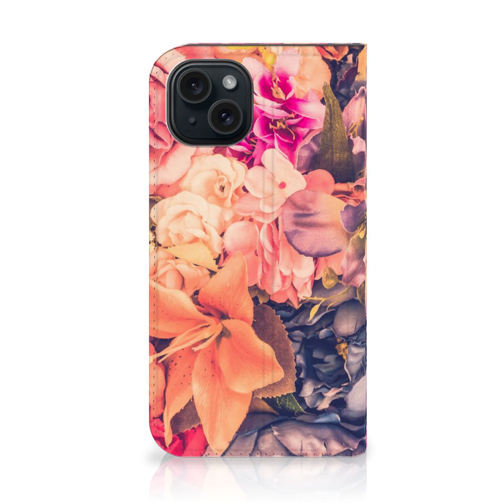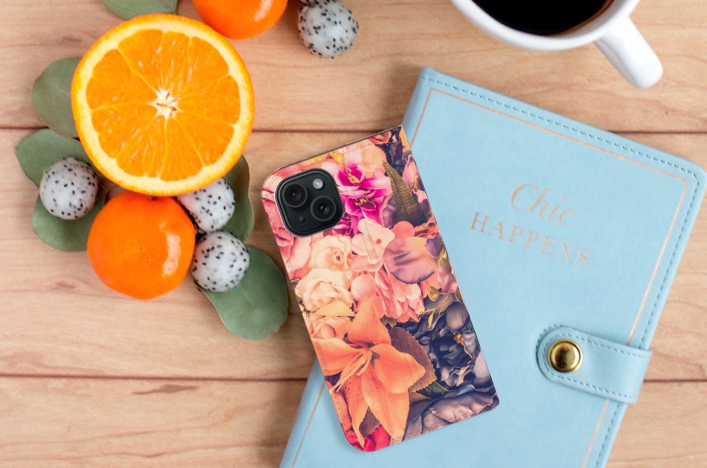 Dit Bosje Bloemen doet een mens en zijn smartphone goed. De oranje, paarse en roze bloemen op deze iPhone 15 Smart Cover geven jouw smartphone een zeer sierlijke uitstraling. Je wordt er ook meteen vrolijker van als je aan het appen, mailen of aan het bellen bent. Valt dan je telefoon op de grond, dan zal er dankzij de stand case met oranje, paarse en roze bloemen geen schade ontstaan. Onze stand cases met oranje, paarse en roze bloemen bieden de allerbeste bescherming en zijn heel praktisch, wat blijkt uit onder meer het vakje aan de binnenkant en de handige standaard waarmee je de smartphone rechtop op tafel neer kunt zetten. De oranje, paarse en roze bloemen passen goed op alle zijden van de case. Op deze stand case van leer en TPU (houder aan de binnenkant) is het ook mogelijk je eigen ontwerp te zetten. In no time maak je zelf een stand case met daarop foto’s van jouw favoriete bloemen.
