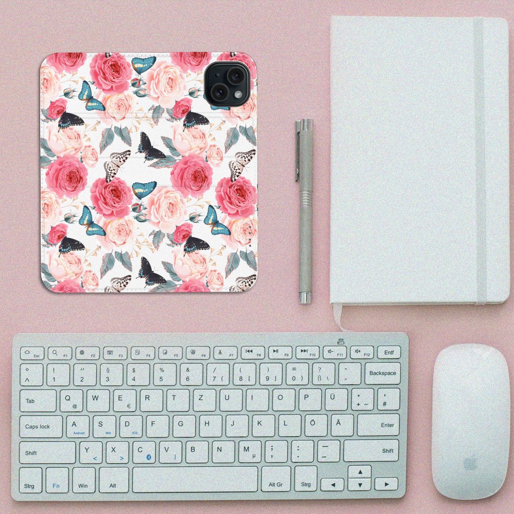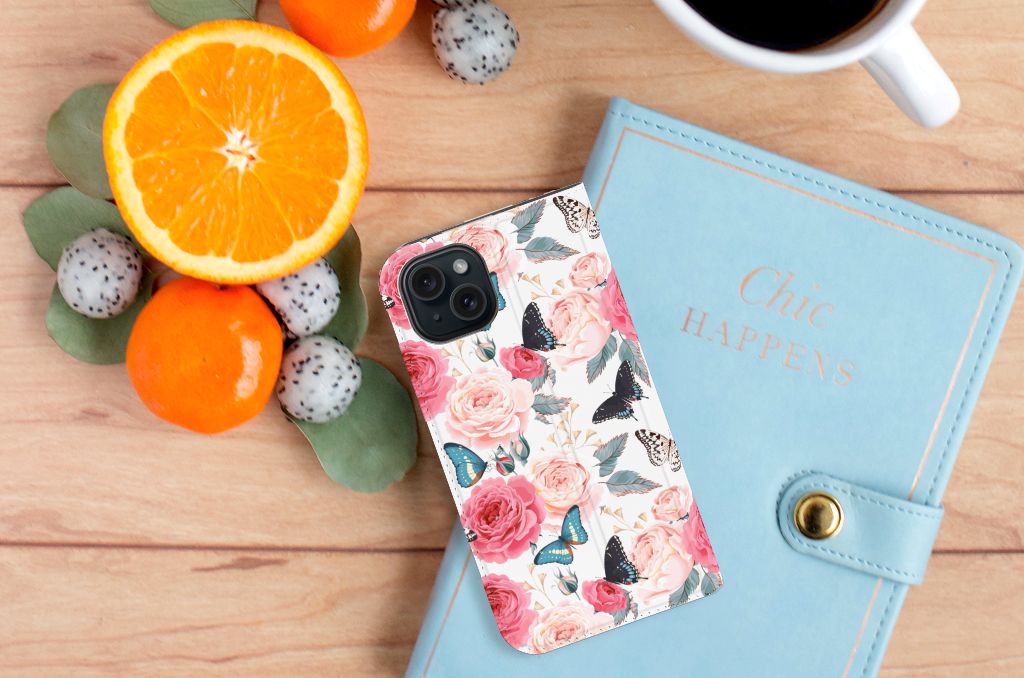 Ben je op zoek naar een uniek telefoonhoesje voor je iPhone 15? Dan ben je bij B2C Telecom aan het juiste adres! Speciaal voor jou hebben we dit prachtige Butterfly Roses design in onze collectie hoesjes opgenomen. Het design wordt bedrukt op een Smart Cover en heeft een vakje aan de binnenkant voor een pasje. Het fijne aan dit hoesje is dat je het als standaard neer kunt zetten. Hierdoor geniet je nog meer als je een filmpje aan het kijken bent op je telefoon. Het hoesje wordt afgesloten door magneten aan de binnenkant. Wil je dit design hoesje nog iets extra's geven? Voeg dan gratis je naam of een quote toe! Is dit design hoesje toch niet helemaal wat je zocht? Ontwerp dan zelf een hoesje in ons ontwerpprogramma.