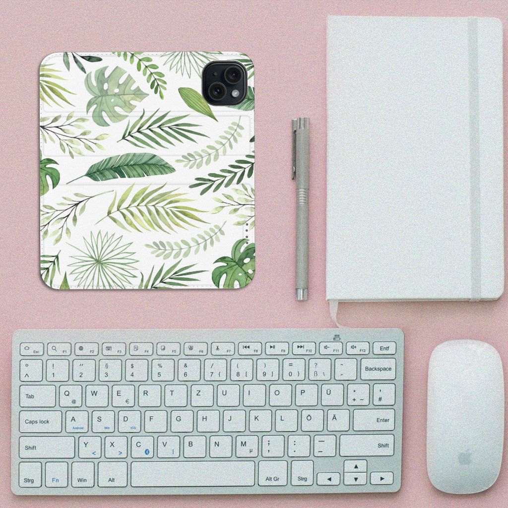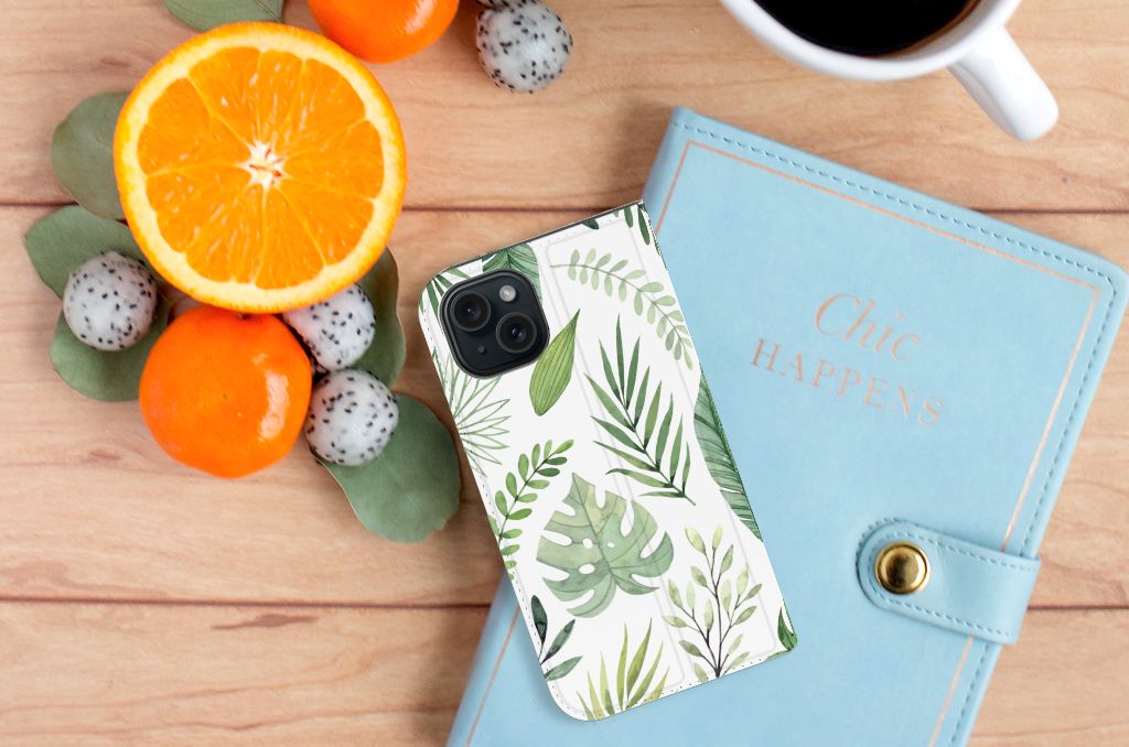 Je voelt je verbonden met de natuur als je kiest voor deze iPhone 15 Smart Cover met print Leaves. De print bestaat uit verschillende groene bladeren en dit zorgt voor een fraai decoratief geheel. Met dit patroon van groene bladeren creëer je een frisse uitstraling voor jouw smartphone. Jij doet er verstandig aan om je telefoon te beschermen met dit design hoesje met groene bladeren, die staan op een stand case. Dit hoesje kenmerkt zich onder meer door het handige vakje aan de binnenzijde en de magnetische sluiting aan de binnenzijde. Voel jij jezelf gezond met een beeld van groene bladeren, dan is deze stand case met print een uitstekende optie. Het beschermt jouw telefoon aan alle zijden. Het TPU aan de binnenzijde klemt zich perfect om jouw smartphone. Kijk ook eens naar onze andere hoesjes met bladeren of misschien maak je zelf wel gewoon liefst je eigen hoesje met eigen foto’s van bladeren.