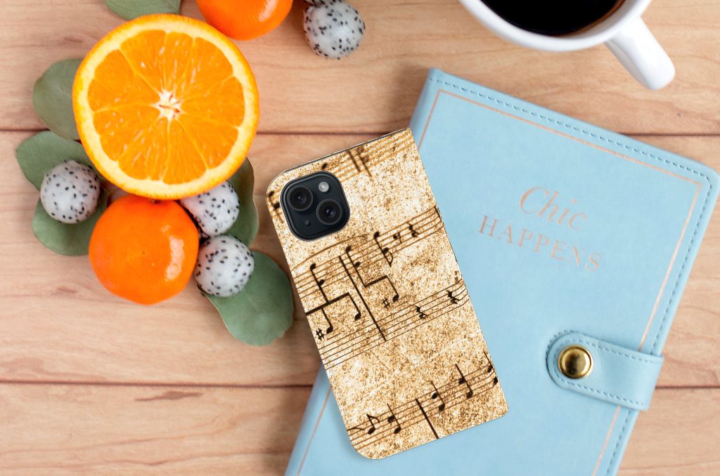 Ben je muzikant, dan is dit design hoesje met Bladmuziek wellicht echt iets voor jou. Met de intrede van nieuwe media wordt de rol van papieren bladmuziek teruggedrongen. Steeds vaker treft men 'bladmuziek' op een beeldschermapparaat, zoals een tablet-pc, e-reader of iPad aan. Gelukkig maar, want als er geen nieuwe media zouden zijn, hadden wij ook nooit onze Phone Case Designer kunnen ontwerpen. Met deze unieke ontwerpmodule kun je jouw favoriete band of artiest op je smartphone hoesje zetten, maar je kunt ook gaan voor dit prachtige design hoesje met print van bladmuziek. Het design staat op een iPhone 15 Stand Case. Deze case beschermt jouw telefoon aan alle kanten en beschikt over een 1 opbergvakje en een speciale standaard. Het hoesje wordt afgesloten met een magneet aan de binnenzijde. De houder aan de binnenzijde is van TPU. Alle zijden van de stand case worden bedrukt.