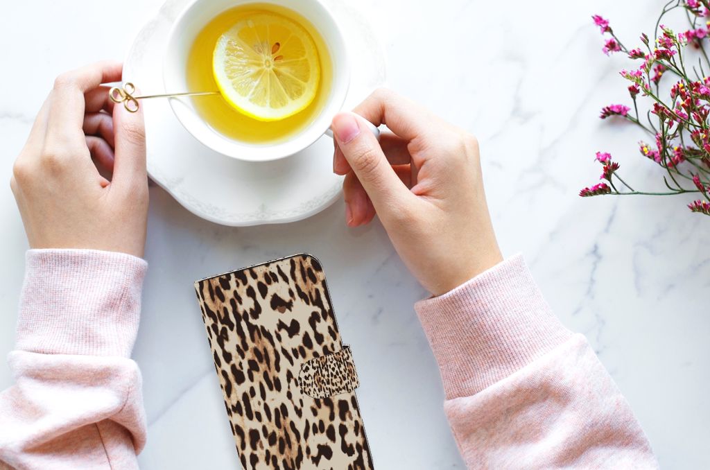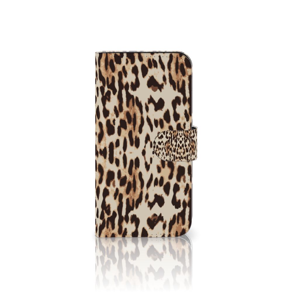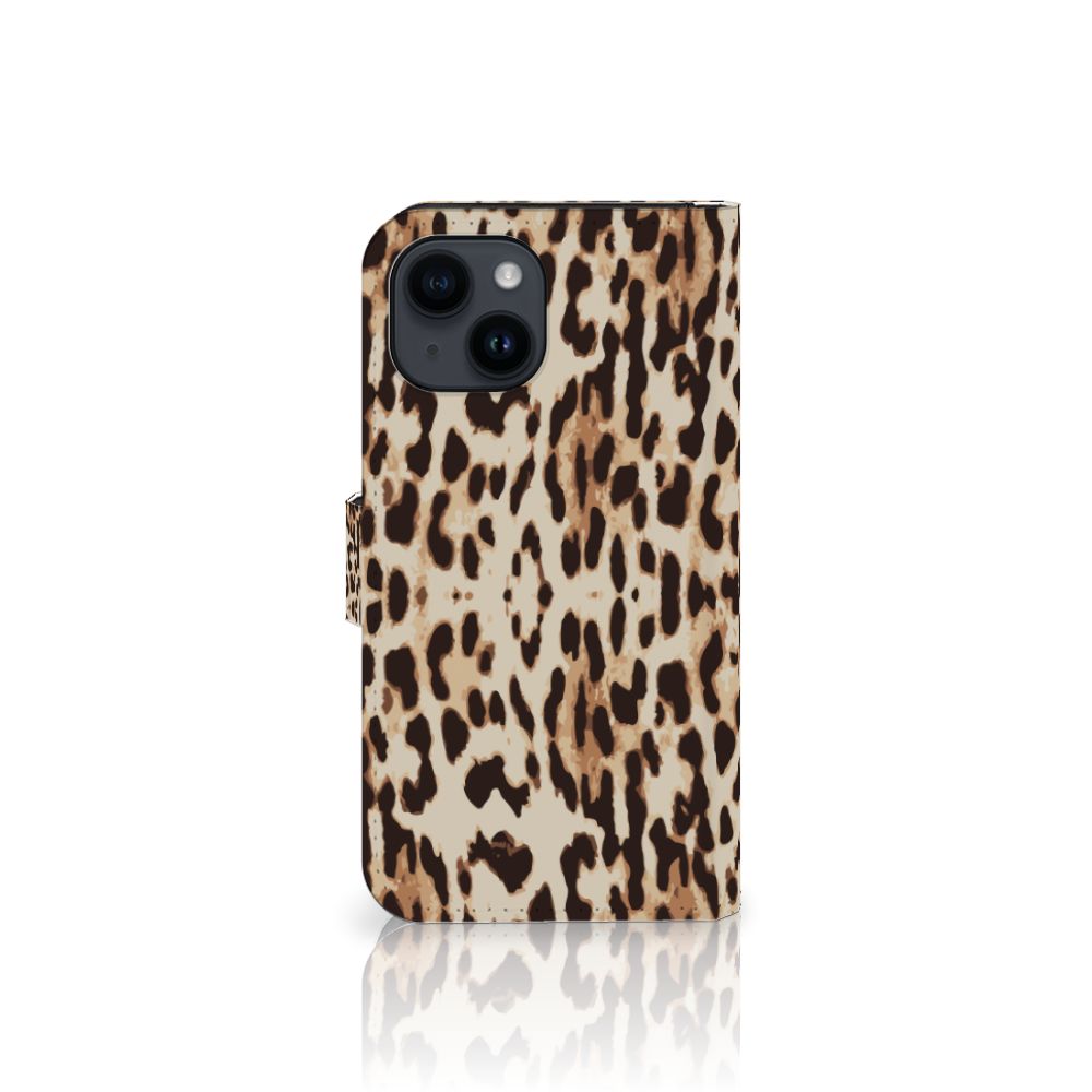 iPhone 15 Telefoonhoesje met Pasjes en met magnetische sluitclip Leopard