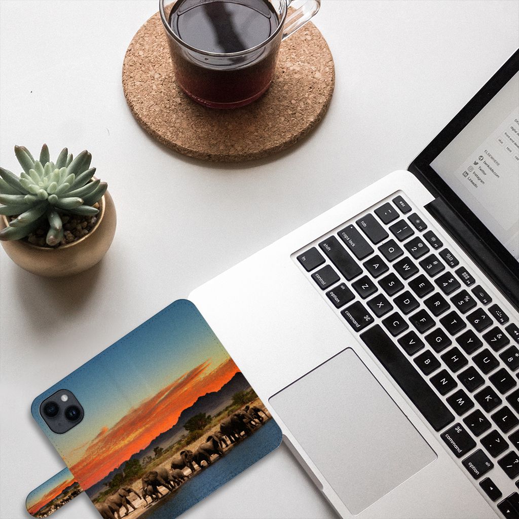 Op dit hoesje zie je een kudde olifanten genieten van het koude water onder een prachtige rode lucht. Dit hoesje straalt pure natuur uit, de olifant is namelijk het grootste landdier. Gegarandeerd zijn olifanten ook erg sterk, evenals onze bookcase. Als je jouw iPhone 15 hierin bewaart, loop je weinig kans op beschadigingen. Zolang hij in het hoesje zit, is hij volledig beschermd. Ook als je je telefoon per ongeluk laat vallen, biedt dit Telefoonhoesje met Pasjes optimale bescherming. Er kan bijna niks meer fout gaan. Het hoesje is vervaardigd uit duurzaam materiaal, waardoor het lang mee zal gaan.