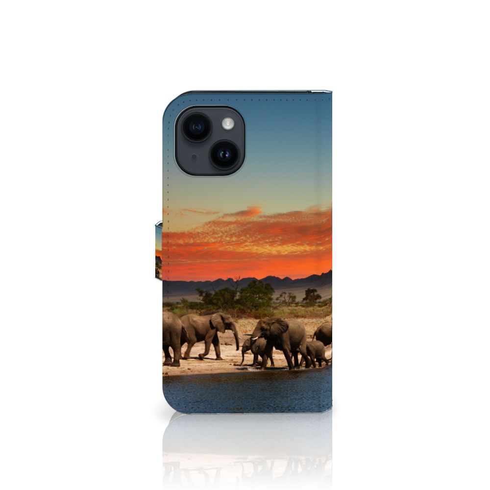 iPhone 15 Telefoonhoesje met ruimte voor 3 pasjes Olifanten