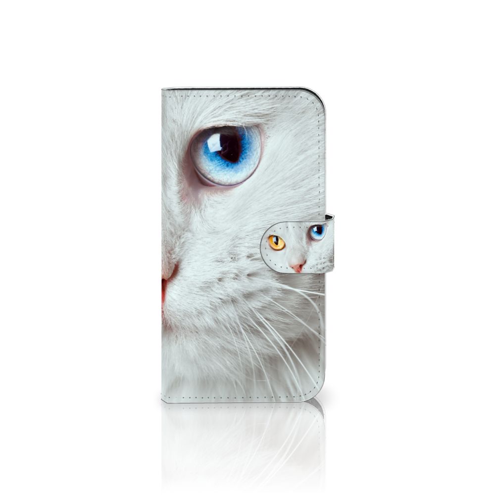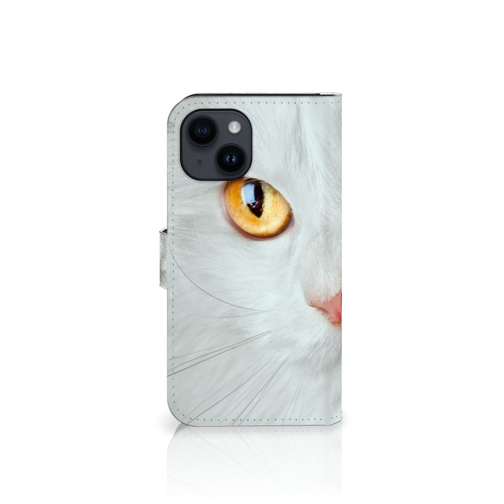 iPhone 15 Telefoonhoesje met magnetisch lipje als sluiting Witte Kat