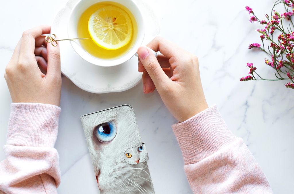 Witte katten zijn erg bijzonder en dat is precies de reden dat wij deze op prominente wijze op dit design hoesje hebben geplaatst. Maar deze witte kat is extra speciaal, doordat de ogen twee verschillende kleuren hebben: blauw en vurig rood. Hiermee heb jij als uniek mens ook een unieke bookcase. Ook de manier waarop dit telefoonhoesje voor de iPhone 15 is bedrukt, is bijzonder. Je ziet namelijk een kleinere versie van dezelfde kat terug op het lipje. Hierdoor zie je de speciale witte kat twee keer terugkomen op jouw hoesje. Omdat je waarschijnlijk een dierenliefhebber bent als je dit Telefoonhoesje met Pasjes uitkiest, is dit ook een erg duurzaam hoesje. Het hoesje wordt aan alle kanten met duurzame inkt bedrukt.