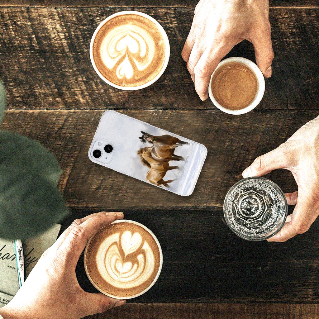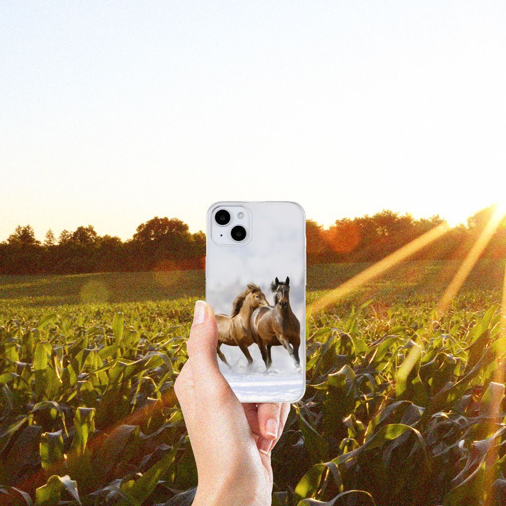 Voor de paardenliefhebbers onder ons hebben we onze collectie uitgebreid met dit design hoesje met print van paarden. Vroeger hield de mens vooral werkpaarden, inmiddels hebben we vriendschap gesloten met het paard. Vandaar dat het ook een favoriet dier is op onze smartphonehoesjes, zoals deze tpu case. Een TPU Hoesje voor de iPhone 15 met Paarden is niet alleen super mooi en chique, maar ook nog eens zeer flexibel. Verder is de case schokabsorberend en heeft het opstaande randen. Zie je liever je eigen paard terug op een hoesje. Dat kan! Door zelf een uniek hoesje te ontwerpen, met eigen foto’s en teksten. De TPU case wordt aan de bovenzijde bedrukt, de zijkanten blijven transparant.