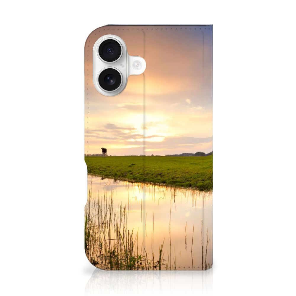 Het levert een idyllisch plaatje op, dit hoesje met een koe en ondergaande zon op de achtergrond. Door een koe buiten te laten lopen en grazen, hebben ze minder kans om ziek te worden. De Koe graast het liefst met soortgenoten, al zijn deze een stukje van de koe op de case verwijderd. Dit levert ook een mooi plaatje op, zoals je kunt zien op dit design hoesje. Deze stand case ziet er strak uit en is voorzien van verschillende uitsparingen. Een iPhone 16 Hoesje maken met magneet aan de binnenzijde beschermt jouw smartphone overal. Alle zijden zijn bedrukt. Koeien hebben lange graasperioden nodig, afgewisseld door rust- en herkauwperioden. Zo goed als grazen voelt voor koeien, zo lang zal jouw design hoesje meegaan. De binnenkant van de stand case is van TPU, de buitenzijde van leer.