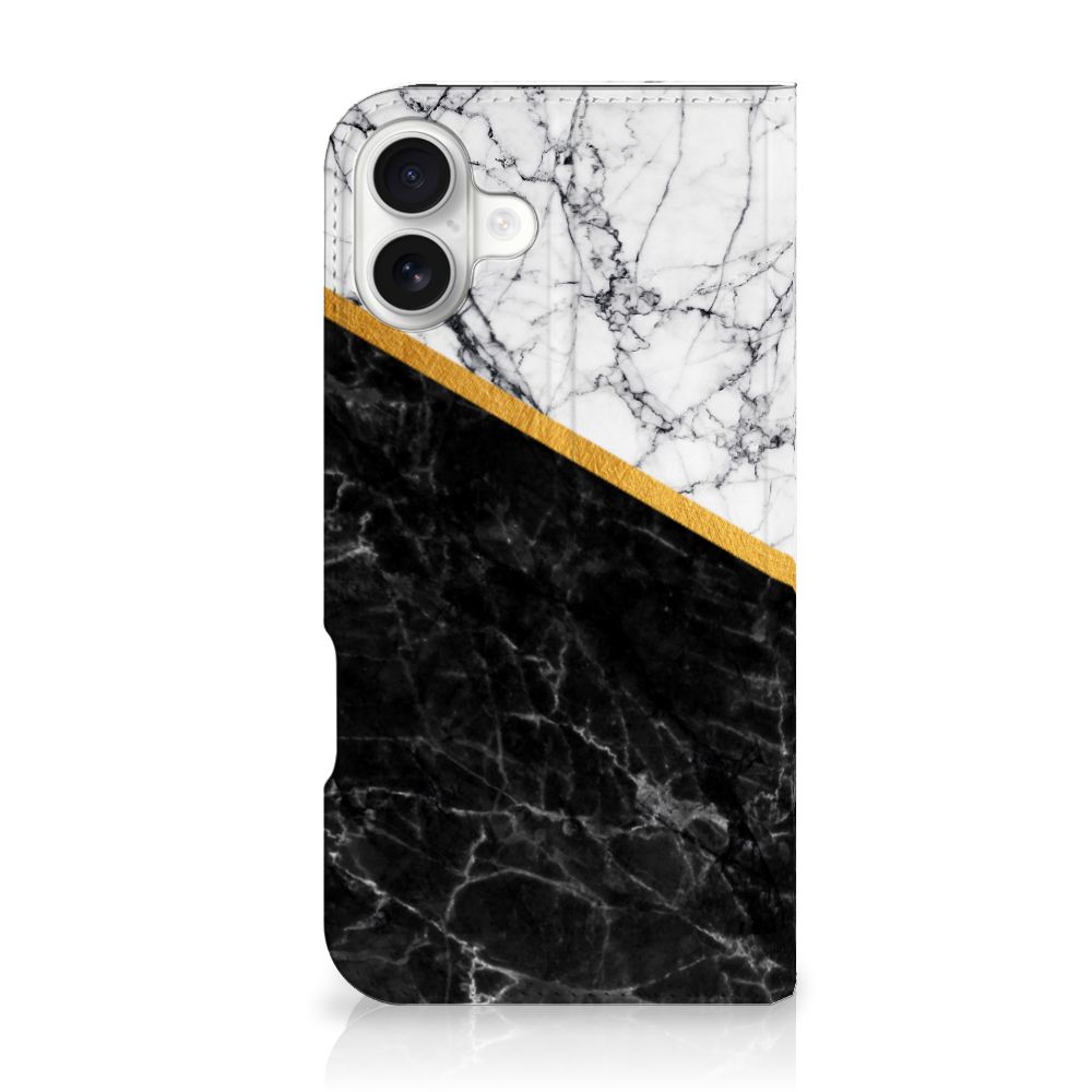 iPhone 16 Plus Marmeren Print Telefoonhoesje Marmer Wit Zwart - Origineel Cadeau Man