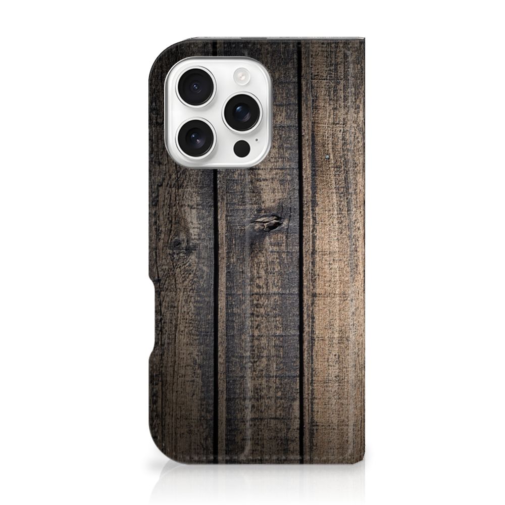 iPhone 16 Pro Book Style Case Donker Hout