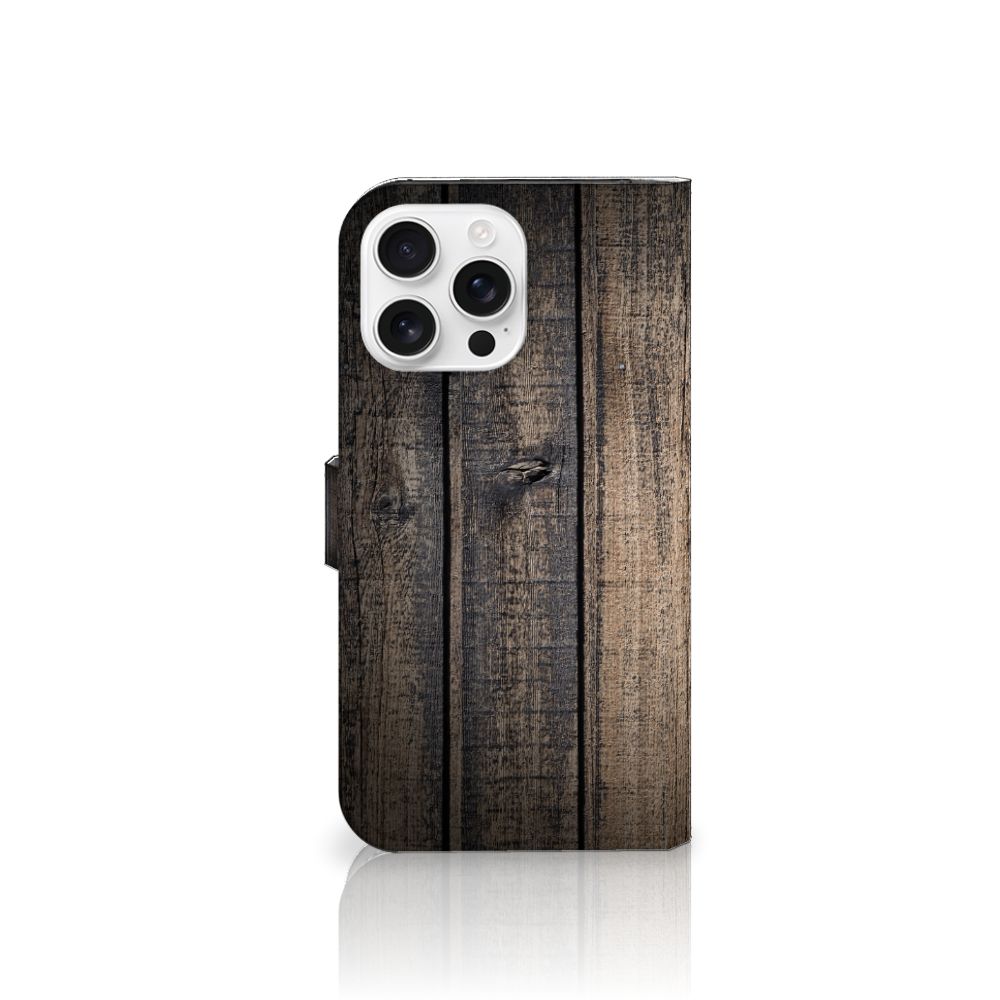iPhone 16 Pro Max Bookstyle Case met ruimte voor 3 pasjes Steigerhout
