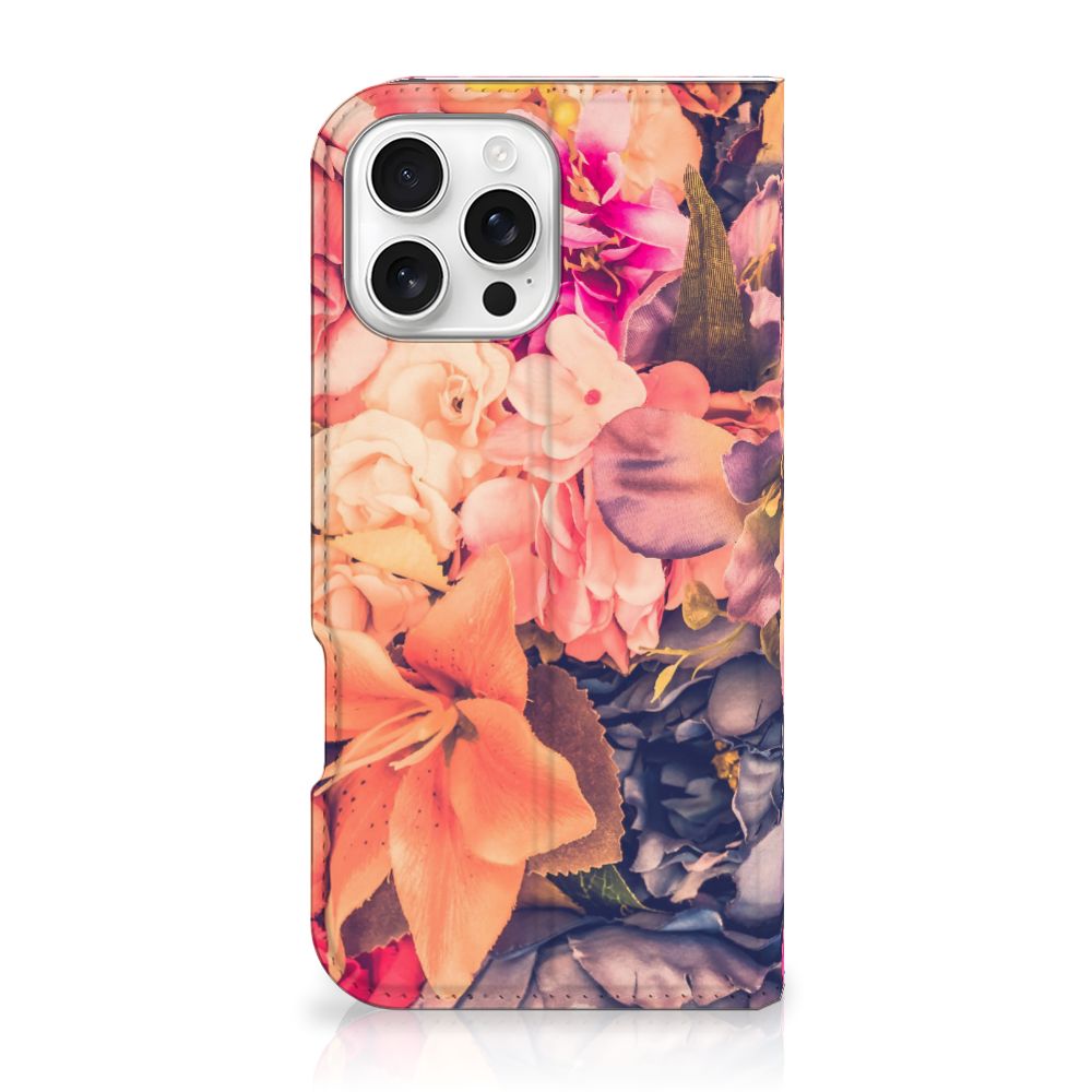 Dit Bosje Bloemen doet een mens en zijn smartphone goed. De oranje, paarse en roze bloemen op deze iPhone 16 Pro Max Smart Cover geven jouw smartphone een zeer sierlijke uitstraling. Je wordt er ook meteen vrolijker van als je aan het appen, mailen of aan het bellen bent. Valt dan je telefoon op de grond, dan zal er dankzij de stand case met oranje, paarse en roze bloemen geen schade ontstaan. Onze stand cases met oranje, paarse en roze bloemen bieden de allerbeste bescherming en zijn heel praktisch, wat blijkt uit onder meer het vakje aan de binnenkant en de handige standaard waarmee je de smartphone rechtop op tafel neer kunt zetten. De oranje, paarse en roze bloemen passen goed op alle zijden van de case. Op deze stand case van leer en TPU (houder aan de binnenkant) is het ook mogelijk je eigen ontwerp te zetten. In no time maak je zelf een stand case met daarop foto’s van jouw favoriete bloemen.