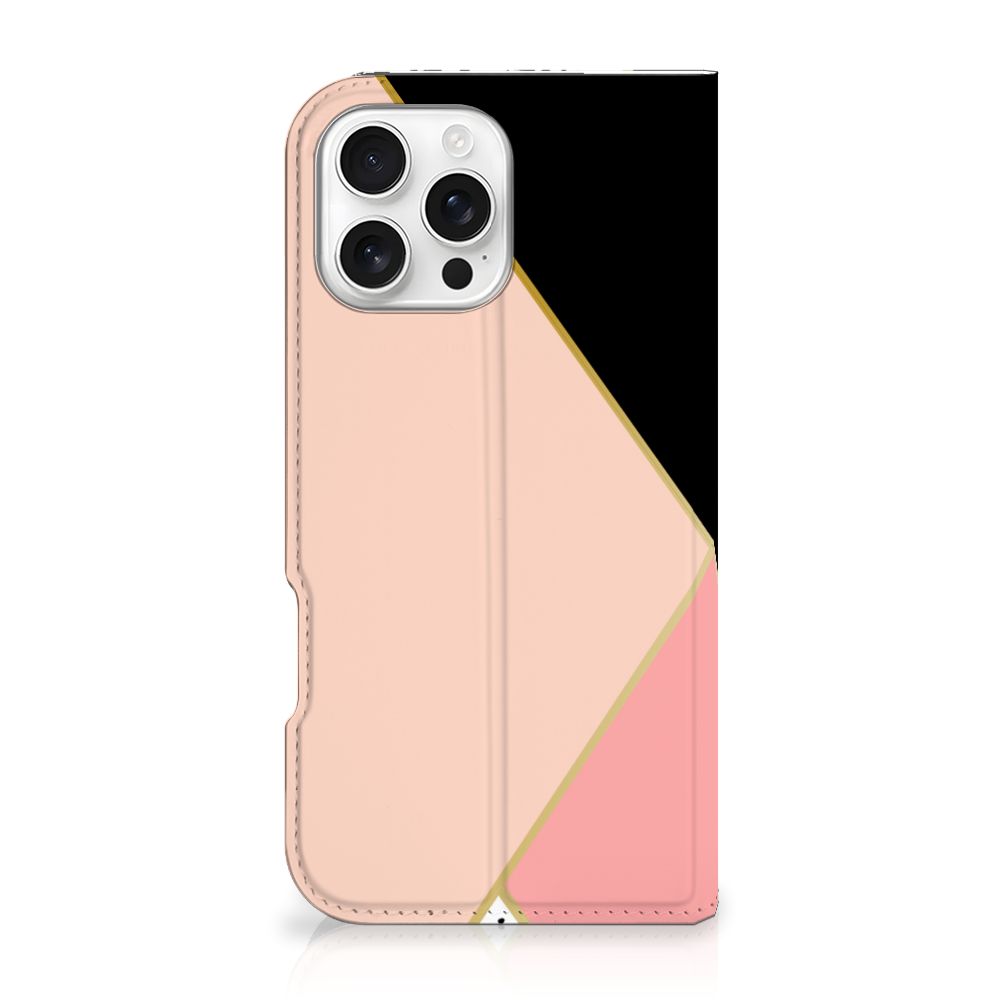 iPhone 16 Pro Max Print Stand Case Zwart Roze Vormen