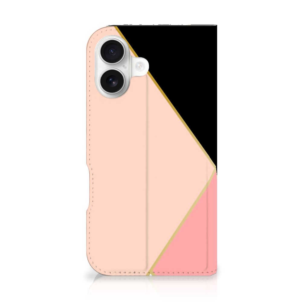 iPhone 16 Print Stand Case Zwart Roze Vormen