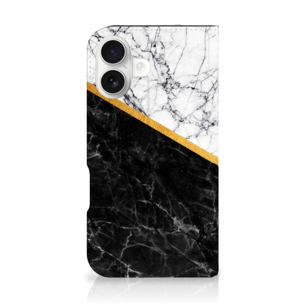 iPhone 16 Bookcase Marmer Wit Zwart - Origineel Cadeau Man