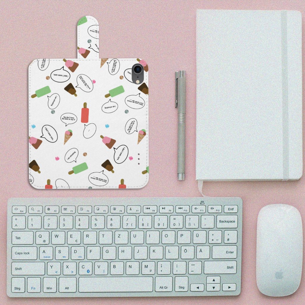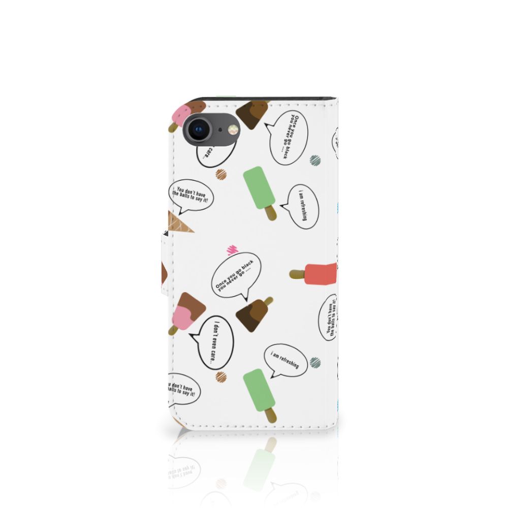 Van dit vrolijke iPhone 7 | 8 | SE (2020) | SE (2022) Book Cover met daarop verschillende soorten ijsjes met tekstwolkjes krijg je sowieso een vrij en zomers gevoel. De zomer komt naar je toe met deze print van ijsjes met tekstwolkjes. Ben je op het strand, dan ontbreekt een lekker ijsje natuurlijk niet. Net zoals je je smartphone bij de hand hebt, met daaromheen een design hoesje met bijzondere ijsjes en tekstwolkjes. Jouw telefoon kan dan de bescherming in de vorm van een boekhoesje met ijsjes zeer goed gebruiken. Alle zijden van dit hoesje worden bedrukt met ijsjes en tekstwolkjes. De case heeft een lipje aan de buitenzijde voor het afsluiten van de telefoon en de houder aan de binnenzijde is van TPU. Onder alle weersomstandigheden zal deze case met verschillende opbergvakjes perfect functioneren, ook op het strand met een ijsje in je hand.