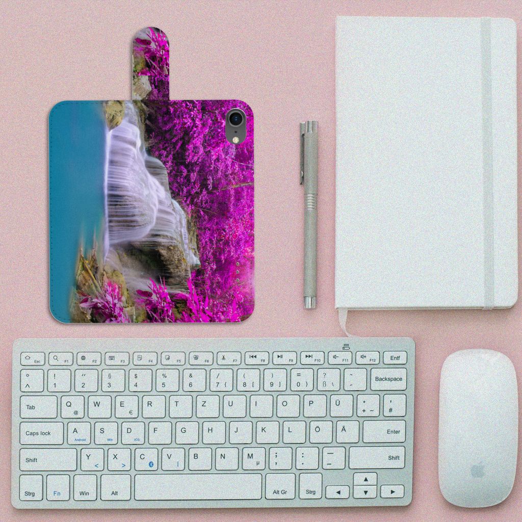 Op deze iPhone 7 | 8 | SE (2020) | SE (2022) Flip Cover zie je een kalme waterval en de achtergrond is gevuld met paarse bomen. Samen creëert dit een prachtig en kleurrijk spektakel, iets wat je graag op je iPhone 7 | 8 | SE (2020) | SE (2022) hoesje ziet. Wanneer je hiernaar kijkt, word je direct kalm. Als jij je even boos of verdrietig voelt, hoef je alleen maar naar jouw boekhoesje te kijken om weer blij te worden. Ook jouw telefoon zal blij zijn met deze Flip Cover aangezien deze goede bescherming biedt. Als jij je telefoon per ongeluk laat vallen, is er niets aan de hand. Het hoesje zorgt ervoor dat de telefoon intact blijft. Zelfs als hij op het beeldscherm zou vallen, is er dankzij de magnetische sluiting, niets aan de hand.