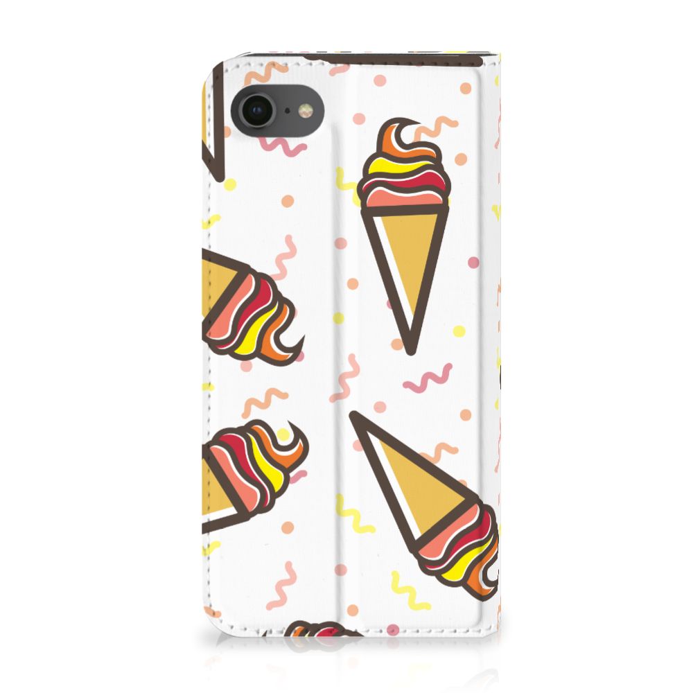 Een vrolijke iPhone 7 | 8 | SE (2020) | SE (2022) Flip Style Cover met daarop verschillende ijsjes. Als je daar geen zomers gevoel meer van krijgt, weten wij het ook niet meer. De zomer en ijsjes zijn onlosmakelijk met elkaar verbonden. Tijdens een bezoekje aan het strand mag een lekker ijsje bijvoorbeeld niet ontbreken. Een design hoesje met lekkere Icecream print past daar natuurlijk ook ontzettend goed bij. Jouw telefoon is helemaal beschermd met een stand case met ijsjes design. De aankoop van deze case is een heerlijke investering, die zich gegarandeerd terugbetaalt. Alle zijden van dit hoesje worden bedrukt met ijsjes. De case heeft een speciale standaard en de houder aan de binnenzijde is van TPU. Onder alle weersomstandigheden zal deze case met opbergvakje perfect functioneren, ook in de zomer met een ijsje in je hand. Dit smaakvolle hoesje is zeer goedkoop te bestellen en wordt zeer snel bezorgd.