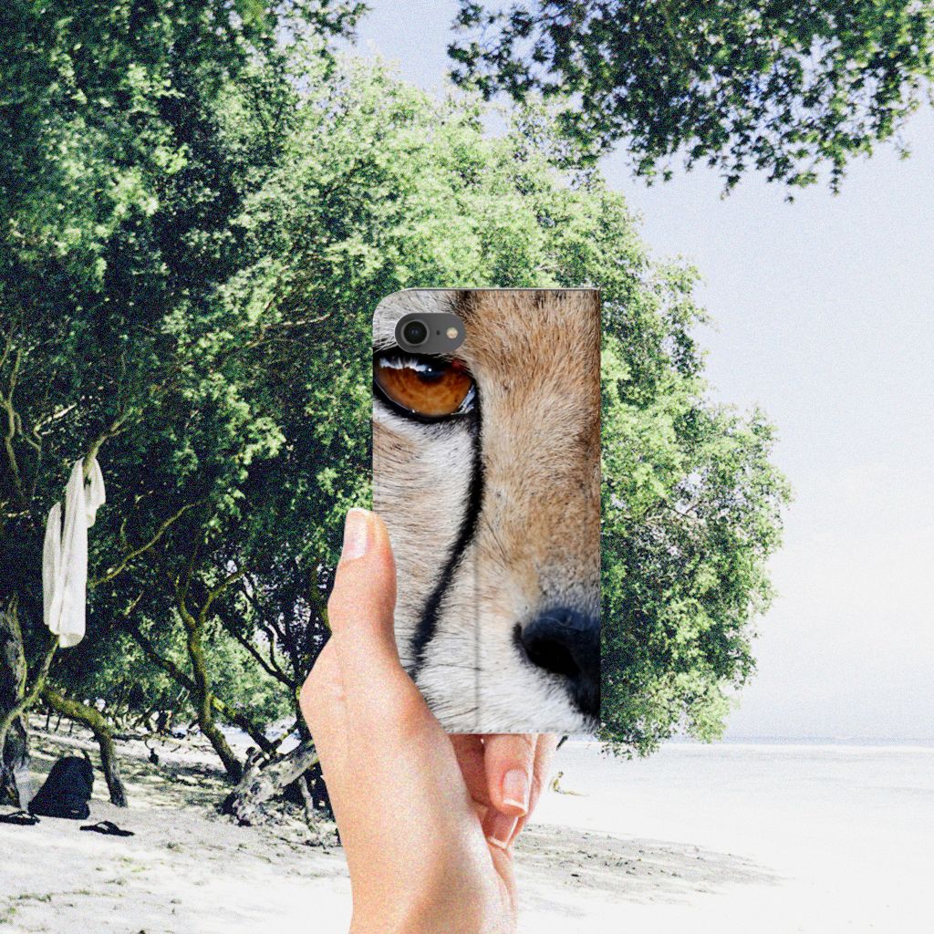 Wist je dat een cheetah, ook wel jachtluipaard genoemd, een topsnelheid van 120 km/u kan halen? Dit maakt de cheetah tot het snelste landdier ter wereld. Dit design hoesje met cheetah print kunnen we dus met recht zeer flitsend noemen. Dit komt niet alleen door de foto van het jachtluipaard, maar ook door de uitstraling van het hoesje. De close up van het dier hebben we op een stand case gezet. Dit is een multifunctionele case, met een vakje aan de binnenzijde waarin je een pasje kwijt kunt. Hiermee is de kous nog niet af, want een iPhone 7 | 8 | SE (2020) | SE (2022) Hoesje maken wordt aan de binnenzijde magnetisch afgesloten en heeft een standaard. De vacht van jachtluipaarden is bedekt met ronde, zwarte vlekjes. Hierdoor valt het dier in zijn natuurlijke leefomgeving zo min mogelijk op. Jij doet dat zeker wel, met deze stand case met design. De buitenzijde is van leer, de houder aan de binnenzijde van TPU.